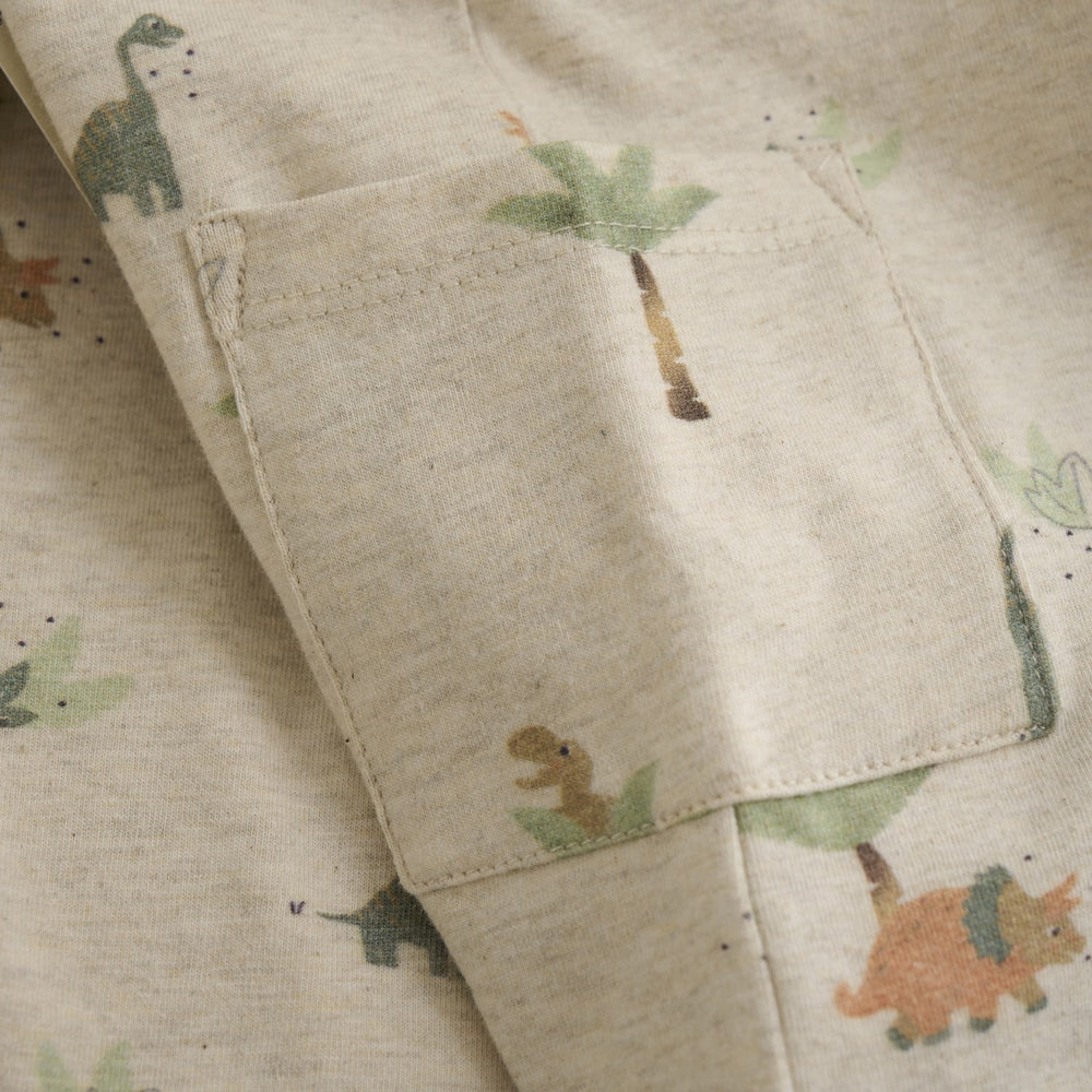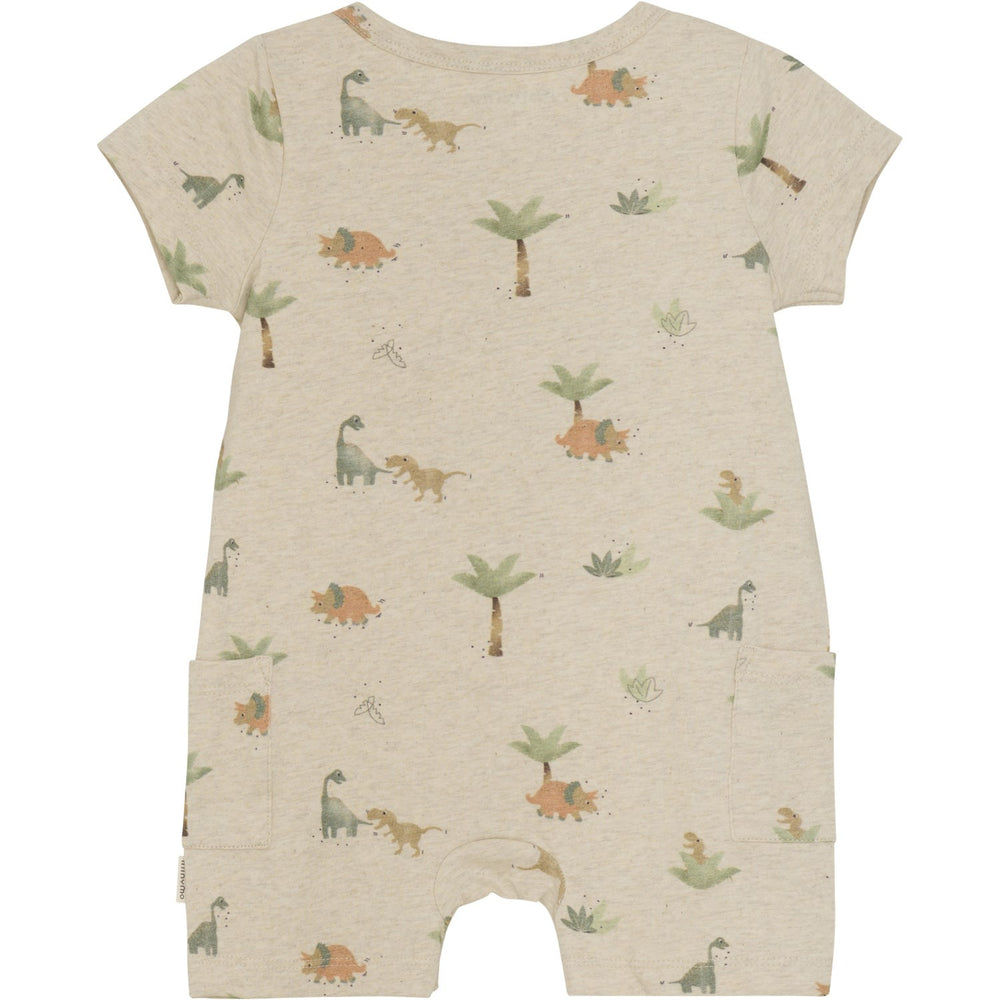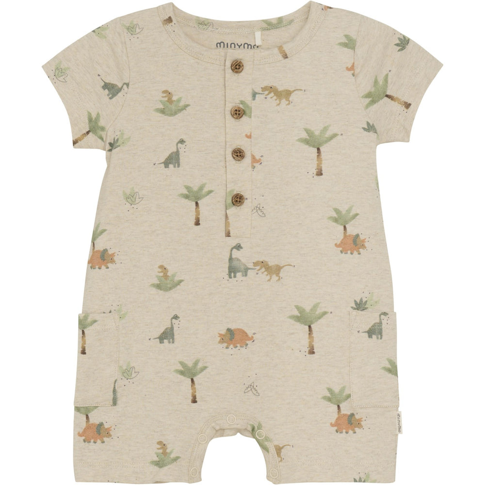 Denne charmerende Minymo Light Beige Melange heldragt med kortærmer er perfekt til leg og afslapning. Fremstillet af en blød bomuldsblanding, prydes den af et iøjnefaldende dinosaurprint. Dragten har praktiske lommer på siderne og er nem at få på og af med knapper fortil samt trykknapper mellem benene. Ideal til børn, der elsker komfort og stil.