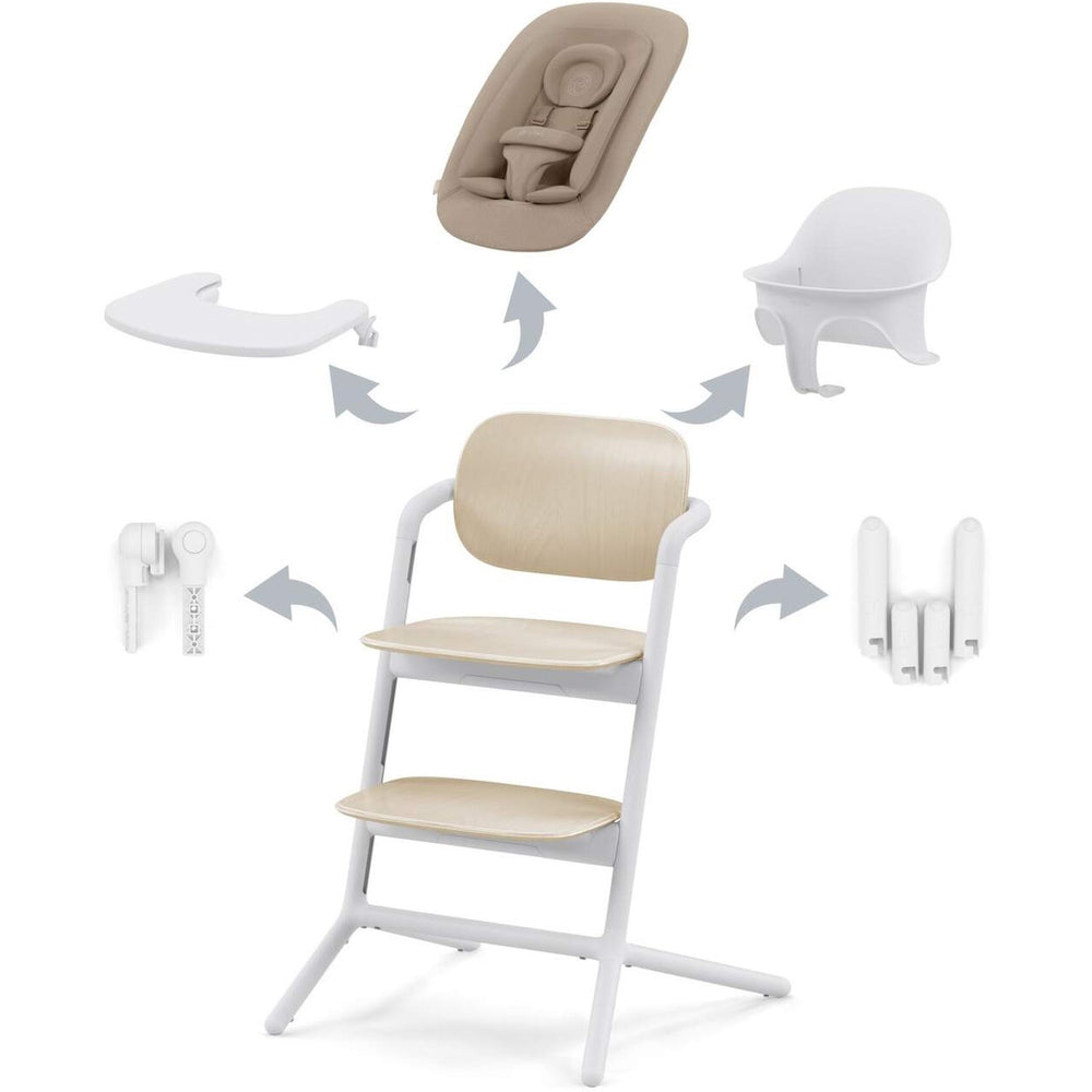 Lad Cybex Sand White LEMO 4i1 Sæt være midtpunktet i dit barns opvækst fra spæd til senior. Denne alsidige højstol tilpasser sig nemt til hvert udviklingstrin: start med den behagelige skråstol og skift til babysæt, som støtter dit barns første siddestillinger. Udviklet i slidstærke materialer som bøgetræ og robust aluminium, sikrer LEMO lang holdbarhed. For ældre børn transformerer sættet til en læringsplatform, hvor de sikkert kan udforske og deltage i familieaktiviteter ved bordet. LEMO Sættet er designet til at lette hverdagen med nem rengøring, enkel justering af bakke og sikkerhedsfunktioner. Oplev hvor ubesværet det kan være at have en møbel, der vokser med familien.