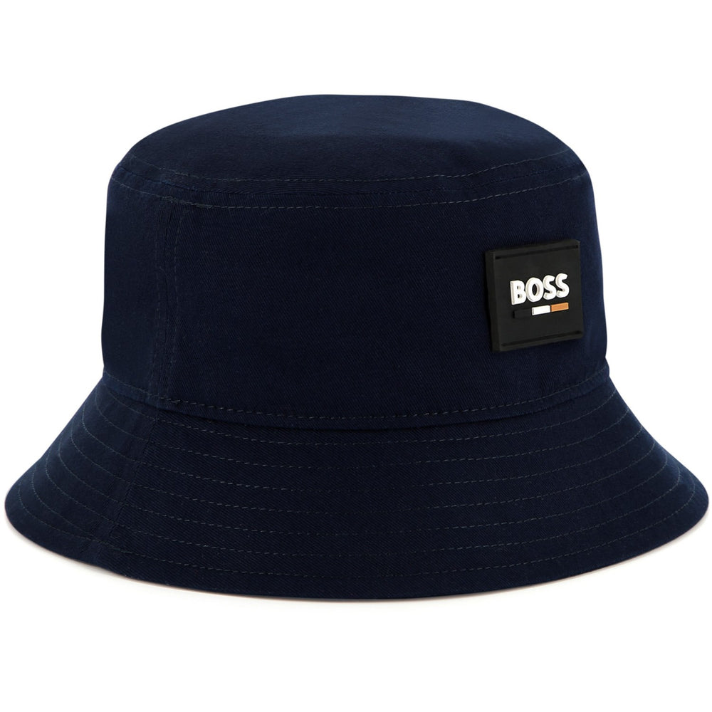 Denne klassiske navy blå bøllehat fra Hugo Boss er fremstillet i blødt bomuldstwill, der sikrer børnene komfort hele dagen. Med sit tidløse design og diskrete gummimærke på forsiden passer hatten perfekt til enhver lille eventyrers garderobe. Ideel til både hverdagsbrug og udendørs aktiviteter.