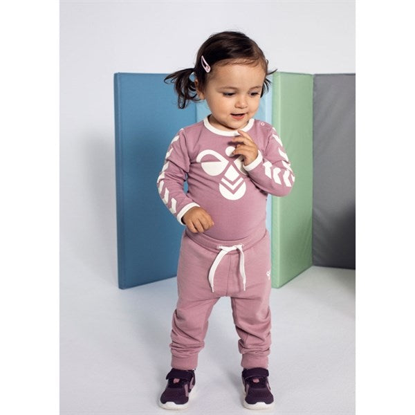 Gør dit barns garderobe både sød og komfortabel med Hummel WoodRose Flipper Body L/S. Denne bodystocking er lavet af blød økologisk bomuld, der sikrer en behagelig pasform hele dagen. Med dens lange ærmer og praktiske trykknapper ved skulderen og i bunden, er den både nem at tage på og af. Det charmerende rosa design med diskrete mønstre tilføjer et stilfuldt touch. Perfekt til både hverdagsbrug og særlige lejligheder.