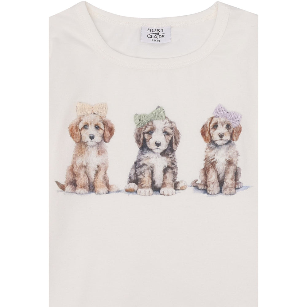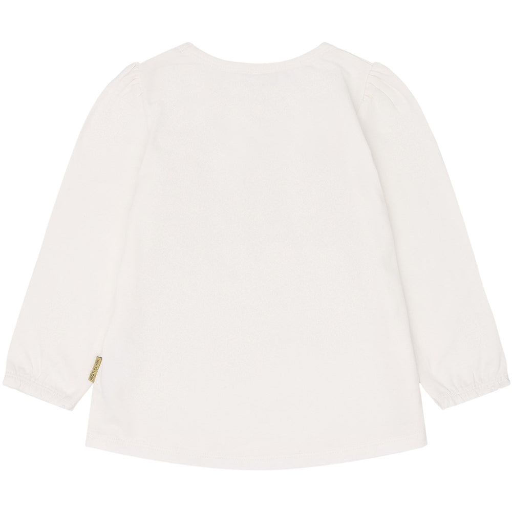 Denne langærmede Hust & Claire Ivory Alma bluse er perfekt til dit barns garderobe. Fremstillet af 95% økologisk bomuld, sikrer den både komfort og holdbarhed. Blusen er prydet med et charmerende hundeprint og dekorative tulle sløjfer i størrelserne 86-128. Designet inkluderer praktiske detaljer som rynk ved skuldrene, elastik i ærmerne og en bekvem knaplukning i nakken, hvilket gør den ideel til hverdagsbrug.