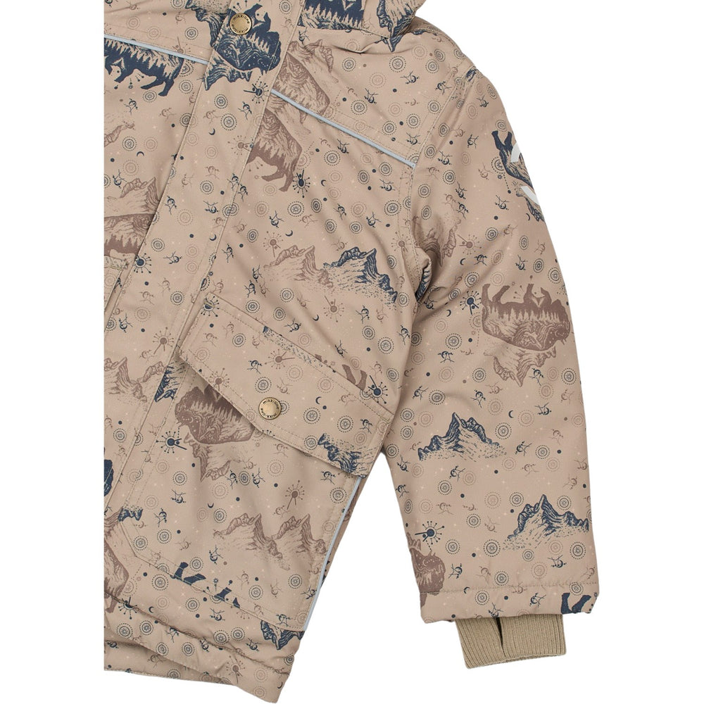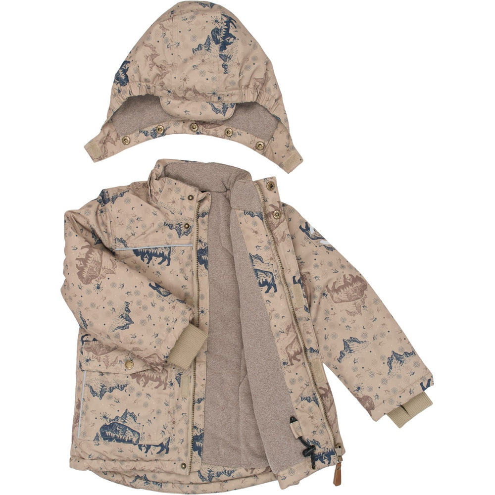 Hold dit barn varmt og stilfuldt denne vinter med Mikk-Line vinterjakken. Denne jakke præsenterer et unikt all-over print med skovdyr, der vil fange ethvert barns fantasi. Fremstillet af 100% genanvendt polyester med en fluorfri BIONIC-FINISH® ECO-belægning, sikrer den optimal beskyttelse mod vind og vejr. Den har også komfortable fleecefor i hætten, kroppen og kraven, samt glat taftfor i ærmerne og lommerne, hvilket gør den ideel til aktive børn.