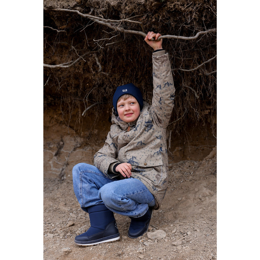Ydermere er jakken udstyret med store klaplommer med trykknapper – perfekt til opbevaring af småting. En brugervenlig YKK-lynlås med stilfuld trækstrop og hagebeskyttelse gør den nem at bruge for små hænder, og de elastiske ribmanchetter med tommelfingerhuller beskytter imod kold luft, mens de holder hænderne fri. Hætten er aftagelig for ekstra sikkerhed, og internal justerbar elastik sikrer en perfekt pasform.