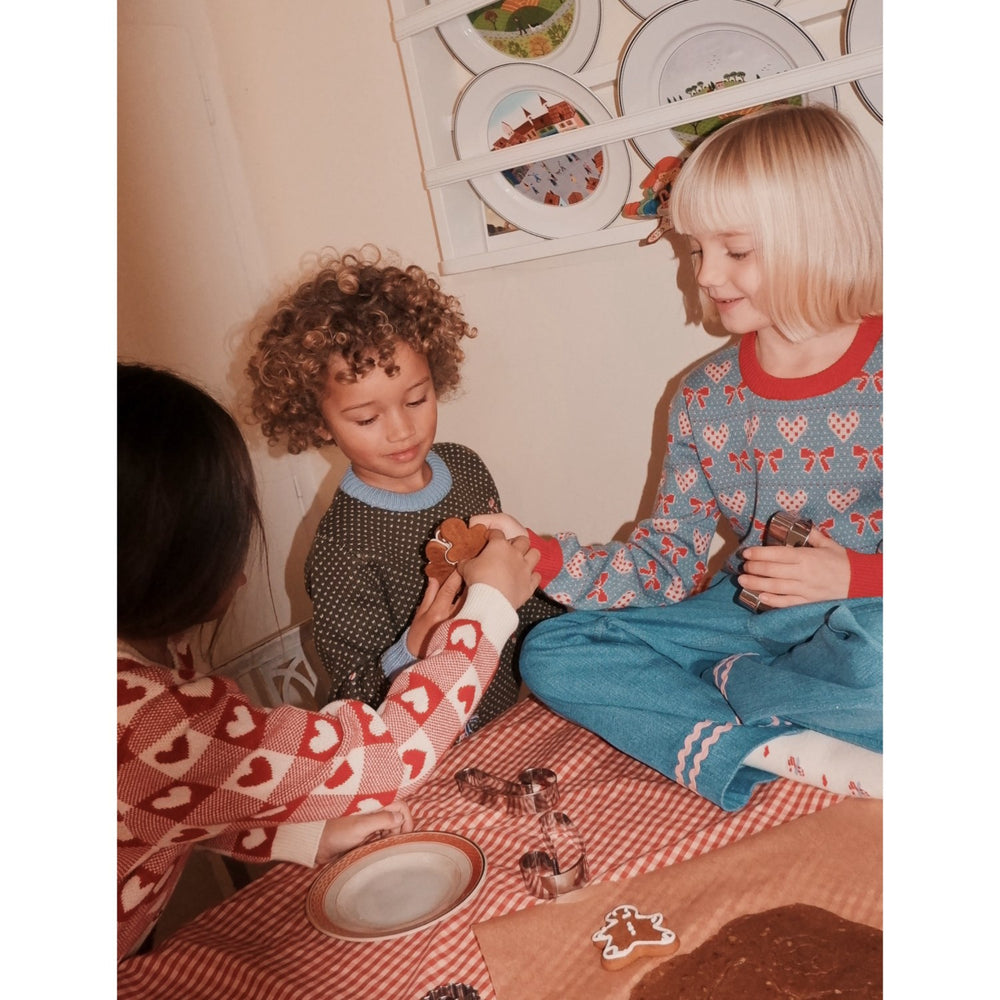 Flöss Poppy Red/Soft White Heart Sweater - 9 mdr er i restordre og vil blive sendt, så snart det er på lager igen.