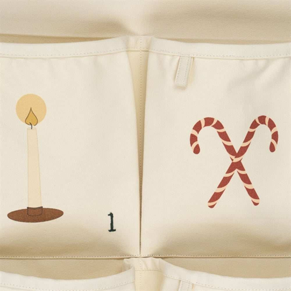 Adventskalender med julemotiv og fire praktiske lommer til adventsgaver. Med praktisk reb øverst på kalenderen, så den kan hænges opLavet i 100 % økologisk bomuld med en pind af 100 % bøgetræB: 40 cm x L: 60 cm Kun til pynt