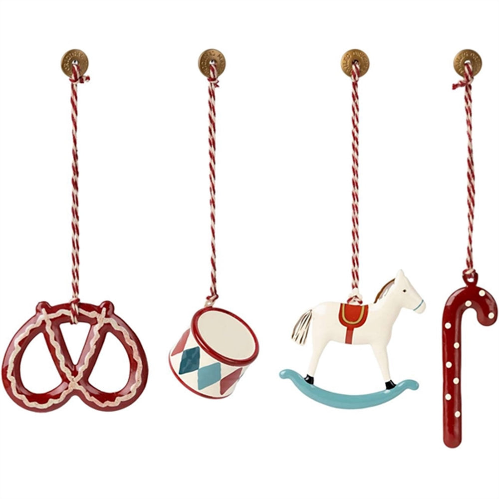 - Indeholder 4 ornamenter: 1 tromme, 1 sukkerstok, 1 pretzel og 1 gyngehest