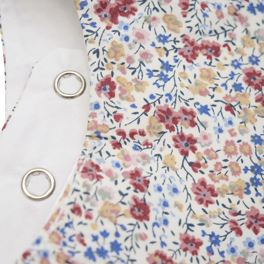 Oplev HUTTEliHUTs blomstrede hagesmæk i Sepia Rose design, fremstillet i 100% bomuld og certificeret efter OEKO-TEX® STANDARD 100. Med praktiske trykknapper bagpå sikrer denne hagesmæk en let påsætning. Perfekt til at holde dit barns tøj rent, mens det passer sammen med resten af kollektionen.