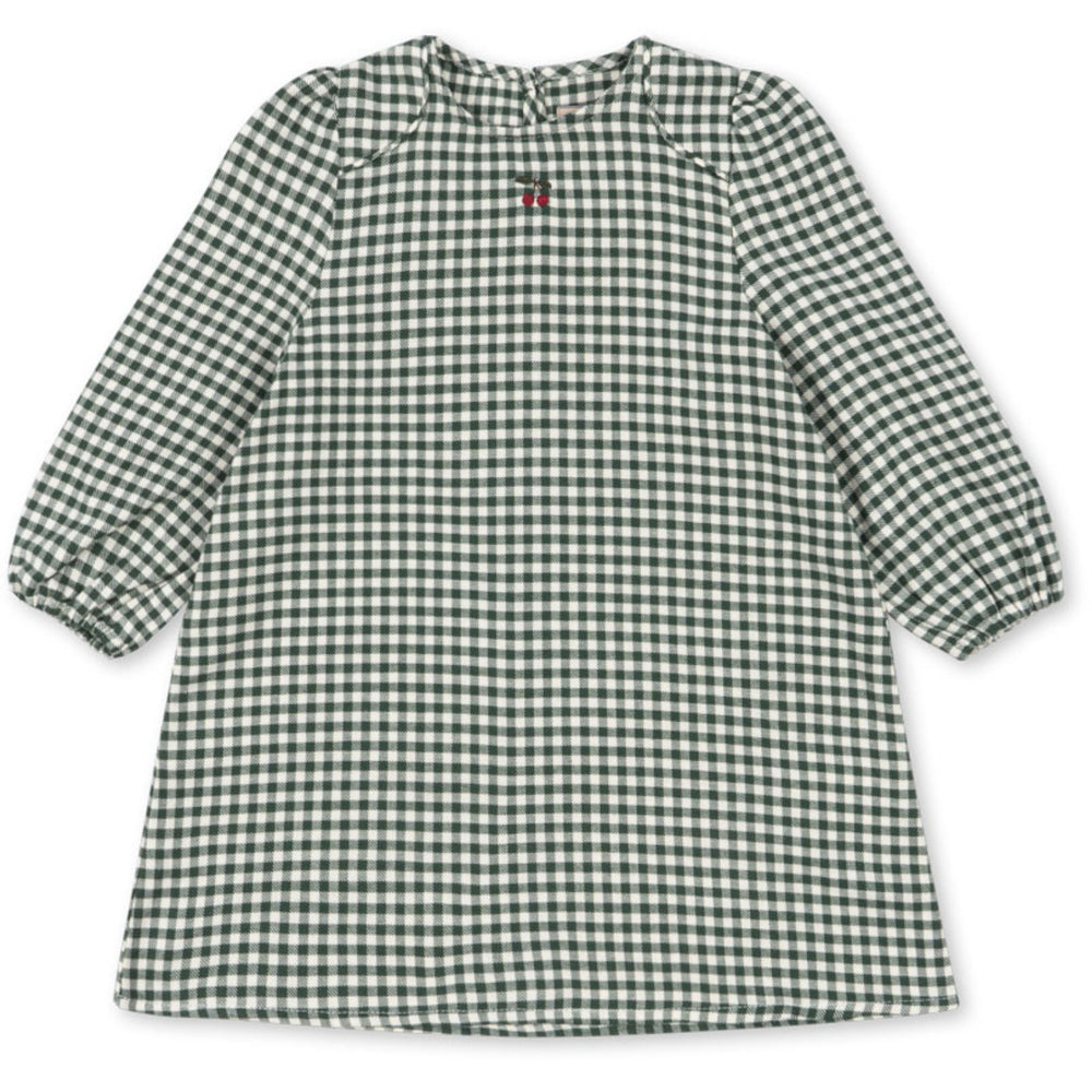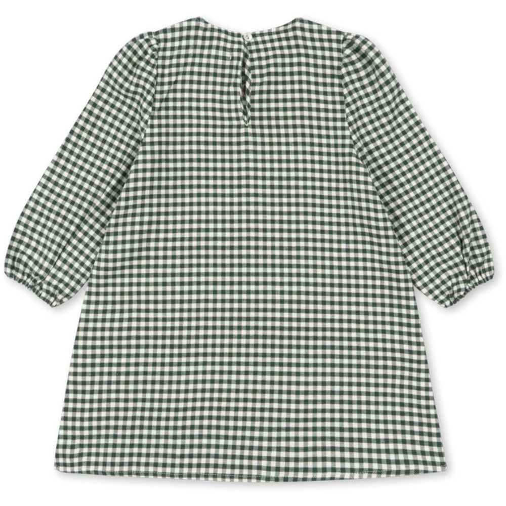 Denne skønne Konges Sløjd kjole er fremstillet i blød, varm bomuldsflannel med en behagelig børstet overflade. Kjolen, der præsenterer sig i en løs silhuet, er ikke blot stilfuld, men også praktisk for enhver lejlighed. Fremstillet af GOTS-certificeret økologisk bomuld (CU1094701), er den et ideelt valg for den bevidste forbruger. Den charmerende grønne tern komplementerer ethvert barns garderobe.