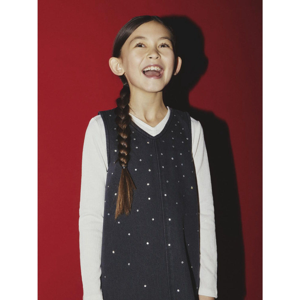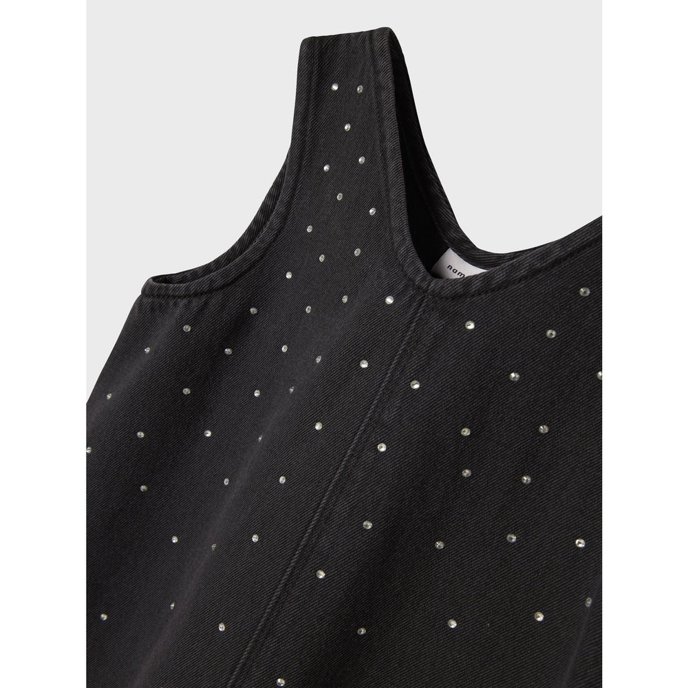 Klæd dit barn stilsikkert på med Name It Dark Grey Denim Nkfmonala Sl Loose Kjole, perfekt til særlige lejligheder. Denne ærmeløse Spencer kjole med V-hals udstråler en unik charme takket være sit slidstærke denimstof accentueret med subtile slid og funklende rhinstensdetaljer. Den løse pasform sikrer komfort hele dagen, mens den mørkegrå farve og den tidløse design fremhæver et moderne og alsidigt udtryk. En ideel kombination af elegance og hverdagskomfort.