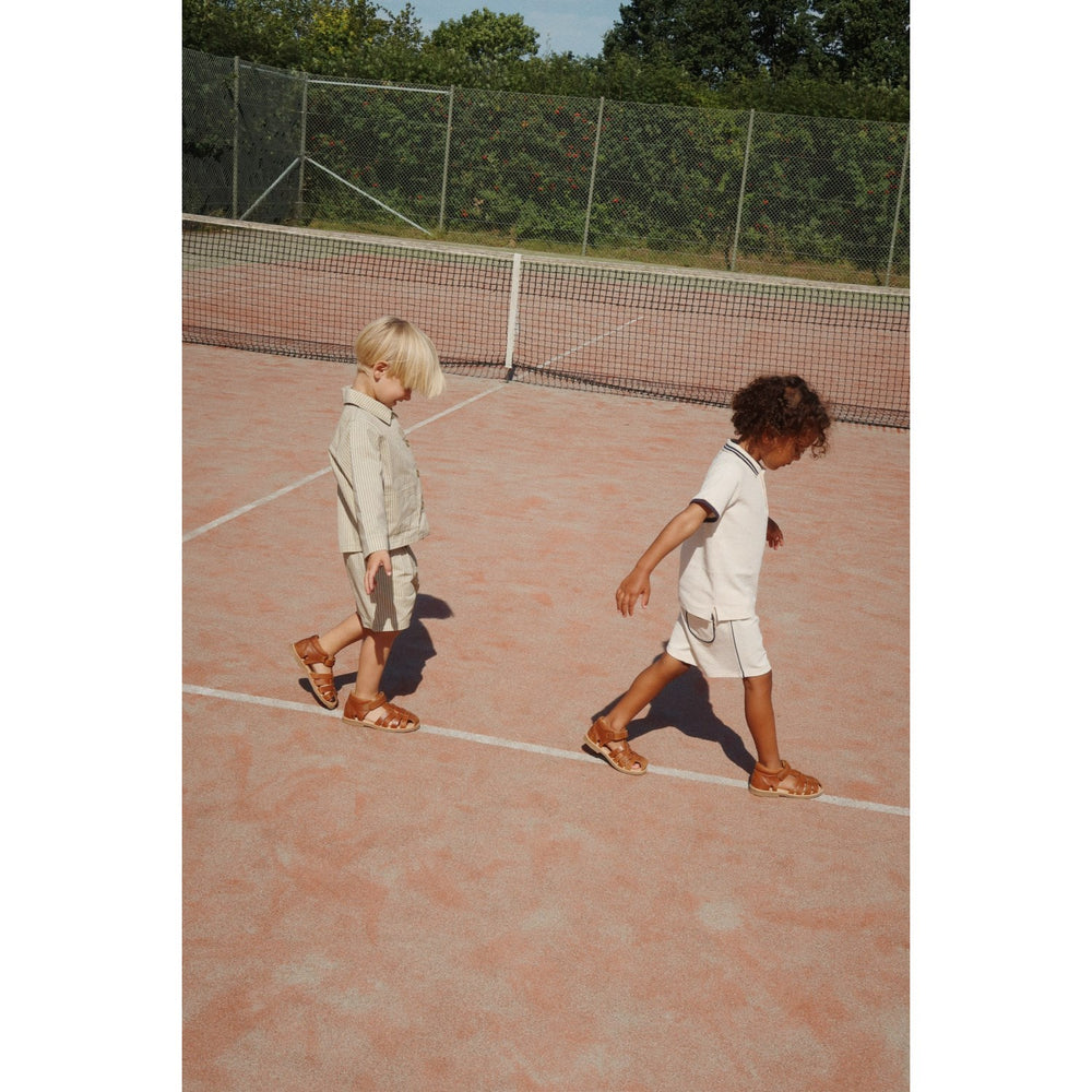 Forkæl din lille med Konges Sløjd Tea Stripe Frankie Over Skjorte, fremstillet i 100% økologisk bomuld og GOTS-certificeret (CU1094701). Denne alsidige skjorte i en tykkere bomuldskvalitet er perfekt som en overtræksskjorte eller let jakke. Udstyret med klassisk krave og forlommer, kombinerer den funktionalitet med et stilrent design. Ideel til både lege- og hviledage.