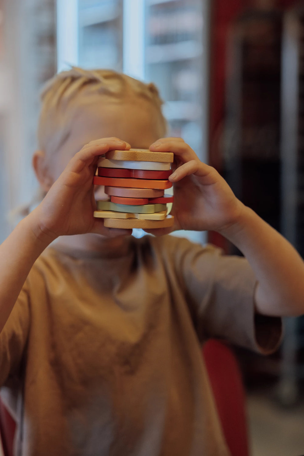 Leg med Mamamemo Sandwich sættet og væk barnets indre kok. Dette trælegetøjssæt, fremstillet af robust FSC-certificeret træ, tilbyder en sikker og holdbar måde for børn at udforske og kombinere forskellige træingredienser med velcro. De kan sammensætte alt fra salat og tomater til laks og forskellige kødtyper, hvilket stimulerer deres fantasi og finmotoriske færdigheder gennem leg. Dette farverige sæt styrker børns problemløsning og sociale færdigheder, da de deler og nyder "måltider" med venner eller familie. En fremragende tilføjelse til ethvert legekøkken, hvor sjov og læring går hånd i hånd.