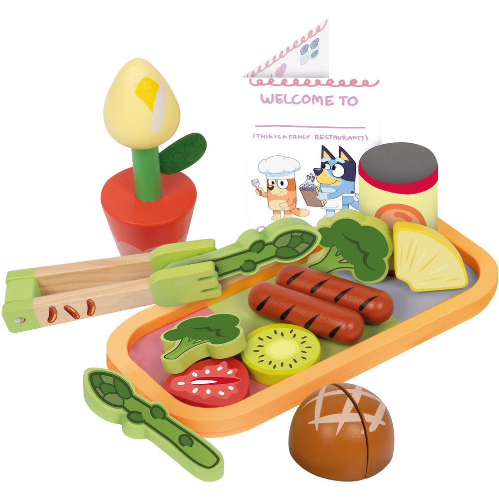 Giv din lille kok mulighed for at udfolde kreativiteten med "Spis med Bluey" køkkentilbehørssættet. Med 32 dele, inklusive farvestrålende madvarer og holdbart service, sikrer dette sæt timevis af underholdning og læring. Det er ideelt til at udvikle børns finmotorik og opmuntrer til rolleleg og samarbejde.