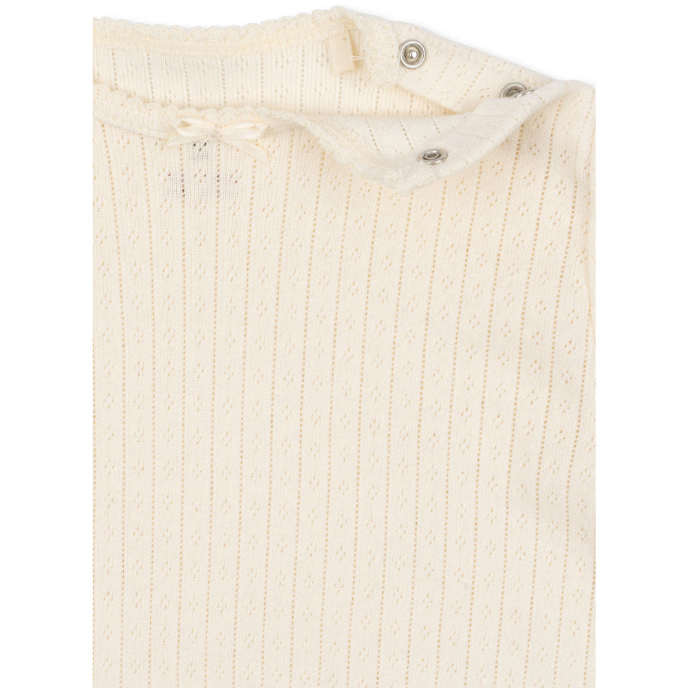 Denne Konges Sløjd Buttercream Minnie Body Gots er fremstillet af blød, økologisk bomuld og designet til den lille. Med sit sarte farvevalg og fine dekorative spids, tilføjer den stil og charme til barnets garderobe. Trykknapper i skridtet sikrer nem påklædning og komfort. Perfekt til hverdagsbrug, denne body kombinerer funktionalitet og æstetisk appeal på bedste vis.