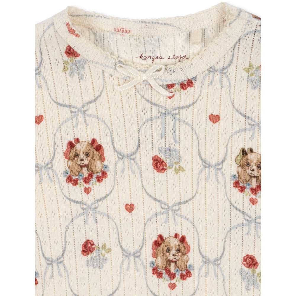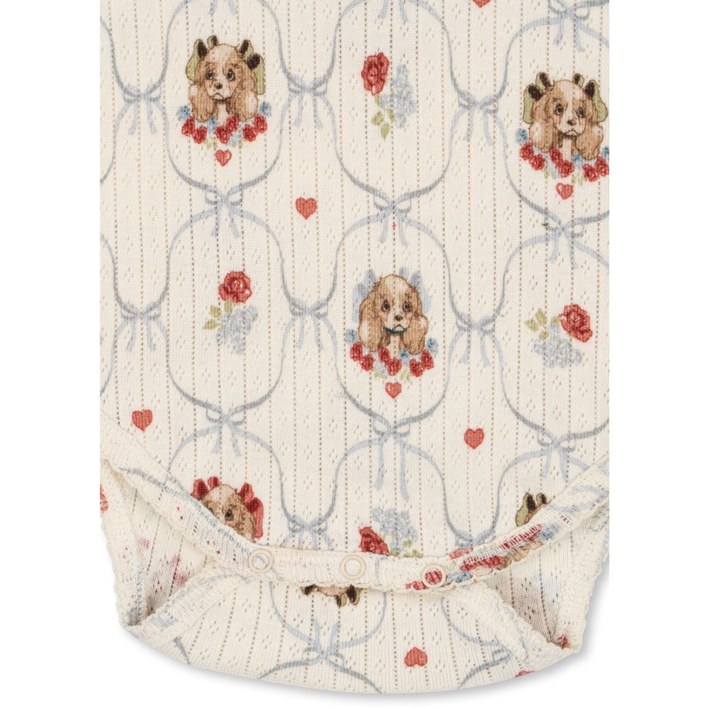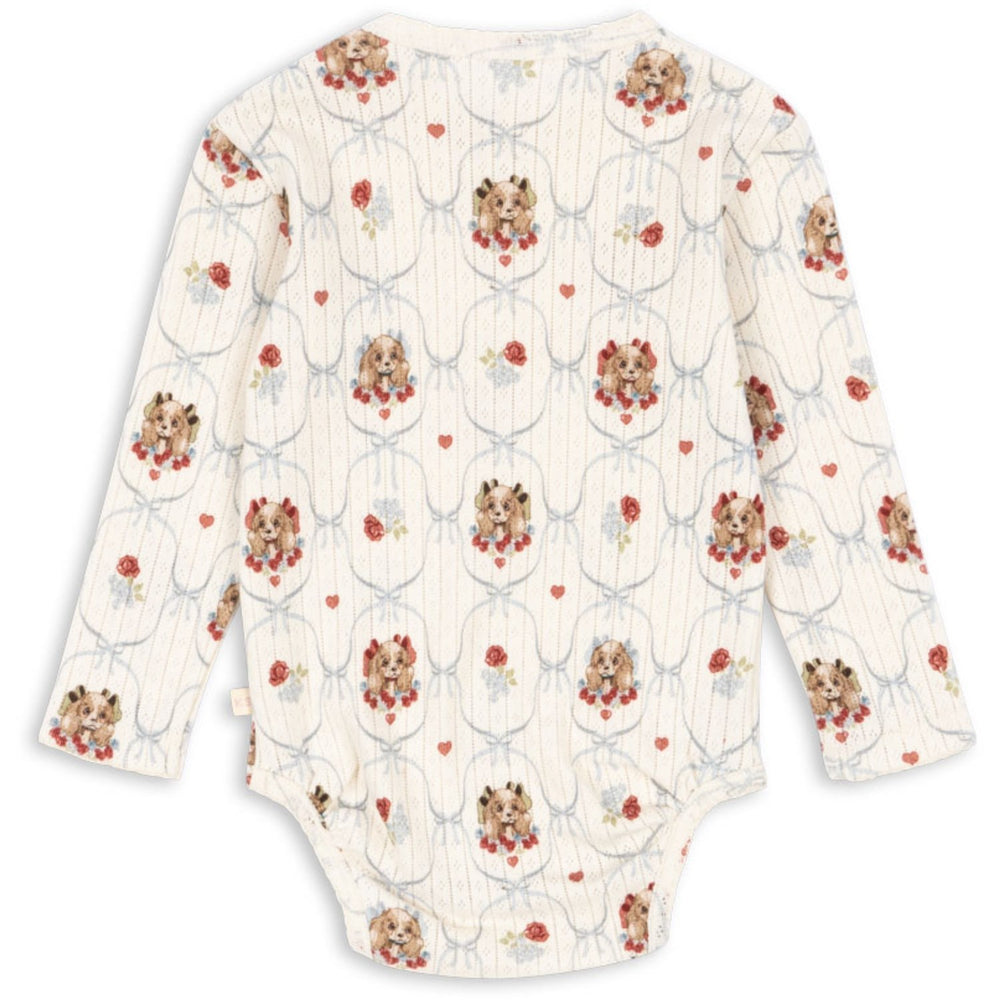 Giv din lille én det ultimative i komfort med Konges Sløjd Puppy Minnie Body. Denne bodystocking er lavet af 100% økologisk bomuld, som er både blød og sikker mod barnets hud. Designet er forfinet med en dekorativ spids og praktiske trykknapper i skridtet, som sikrer en hurtig og let påklædning. Stilen er ikke blot komfortabel men også charmerende med sin rene æstetik, der gør den ideel til daglig brug. Certificeret GOTS (CU1094701), dette er en pålidelig tilføjelse til barnets garderobe.
