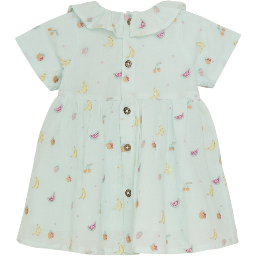 Denne charmerende kortærmede kjole fra Minymo er fremstillet i 100% bomuld, hvilket sikrer en fremragende kvalitet og holdbarhed. Med et iøjnefaldende frugtprint og en elegant krave tilbyder denne kjole både stil og komfort. Knappelukningen bagpå gør den let at tage på og af, hvilket gør denne kjole ideel til daglig brug.