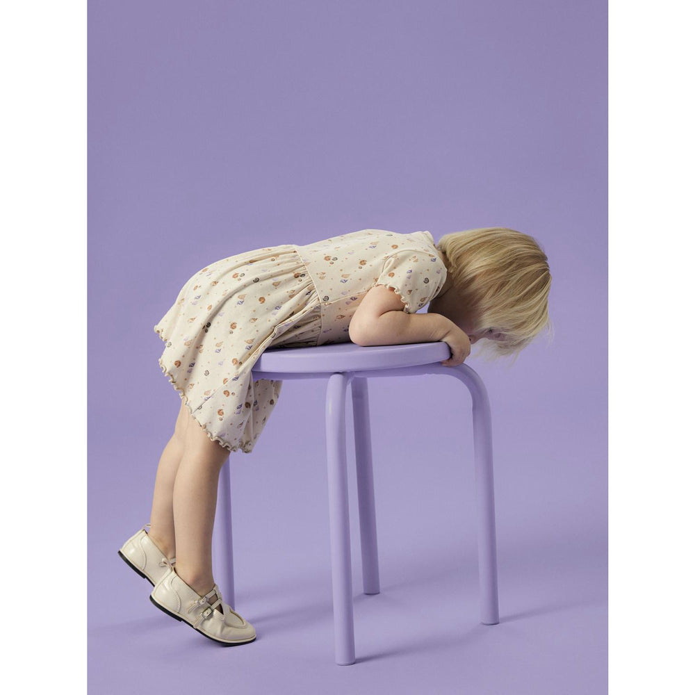 Forkæl din lille med Name It Sandshell Nmfhiline Ss Kjole, som kombinerer stil og komfort. Denne charmerende kjole har kortærmet design med en rund halsudskæring, der sikrer en behagelig pasform til leg og hverdag. Ribstrikket materiale med vertikalt sribe mønster tilbyder fremragende elasticitet og giver kjolen et tidløst udseende. Det hele fuldendes med en glitrende overfladeprint, der tilføjer et sjovt og funkelt udtryk. En alsidig tilføjelse til enhver unge fashionistas garderobe.