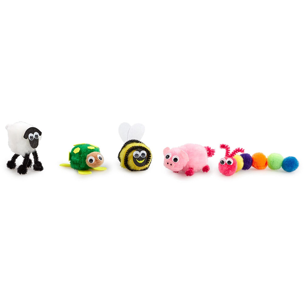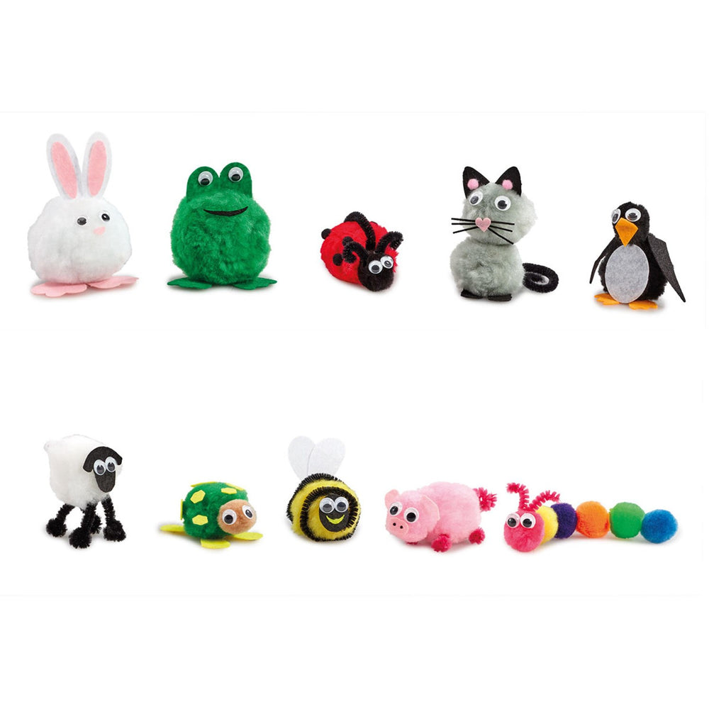 - Medfølger: Over 30 pomponer, rulleøjne, piberensere, limprikker, firkanter af filt i forskellige farver