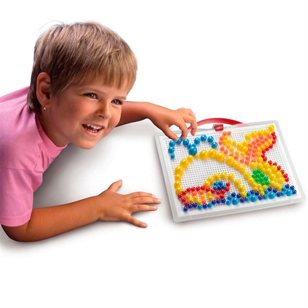 Giv dit barn muligheden for at udfolde sin kreativitet med Quercetti Stiftmosaik FantaColor Portable. Med 280 livlige farvede stifter og en stabil, perforeret plade med afrundede kanter, tilbyder dette sæt timevis af underholdning og læring. Pladens fod sikrer stabil brug både i lodret og vandret position, og et indbygget håndtag gør det let at transportere, perfekt til leg både hjemme og på turen. Stifterne er designet til at forbedre børns finmotorik samt styrke deres koncentration og koordination. Ideelt for børn fra 3 år, dette stiftmosaiksæt fremmer ikke kun individuel leg, men også samvær i familien med fælles kreative projekter.