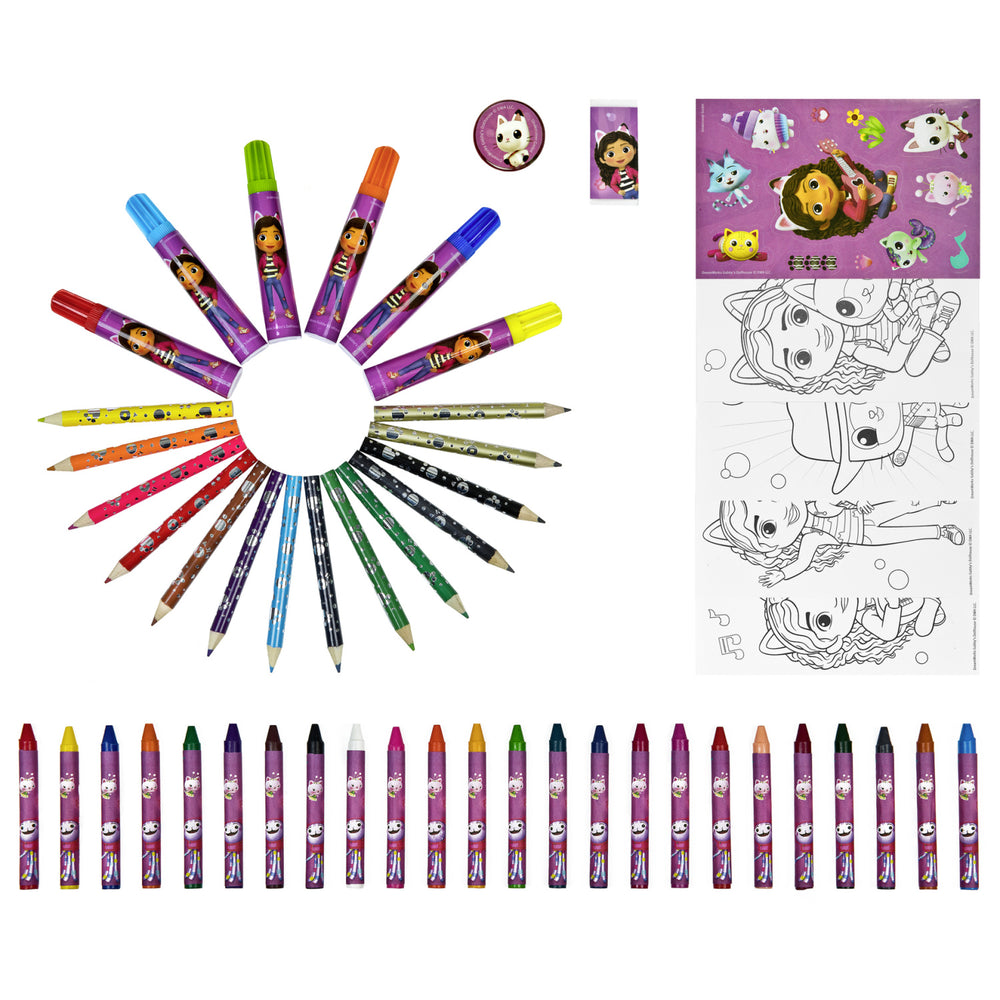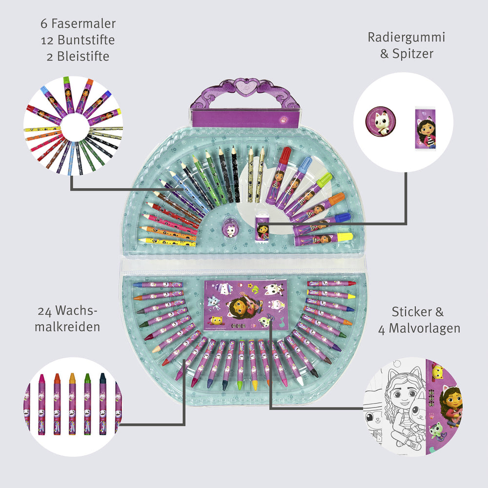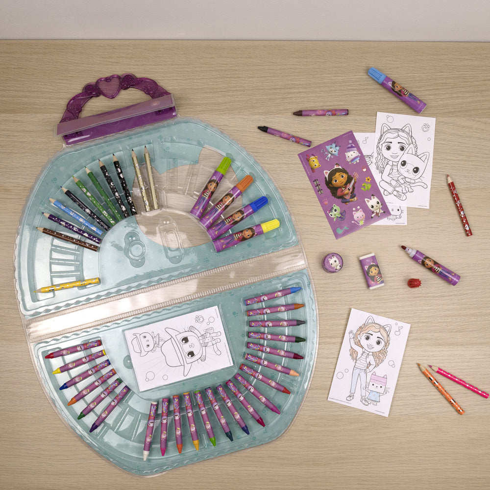 Giv dit barn timevis af kreativ sjov med Gabby’s Dukkehus maletaske fra Undercover. Denne kompakte taske er fyldt med 51 forskellige tegne- og maleværktøjer, herunder farveblyanter, tuscher og kridt, der er perfekt tilpasset små hænder. Alt udstyret er nemt at bruge og opbevare, hvilket gør det til det ideelle valg for kreative stunder både hjemme og på farten. Denne alsidige maletaske fremmer barnets finmotorik og kreativitet, samtidig med at det tilbyder en praktisk og ryddelig løsning for forældre. Nyd værdifulde øjeblikke sammen med familien, mens dit barn udforsker sin kunstneriske side.
