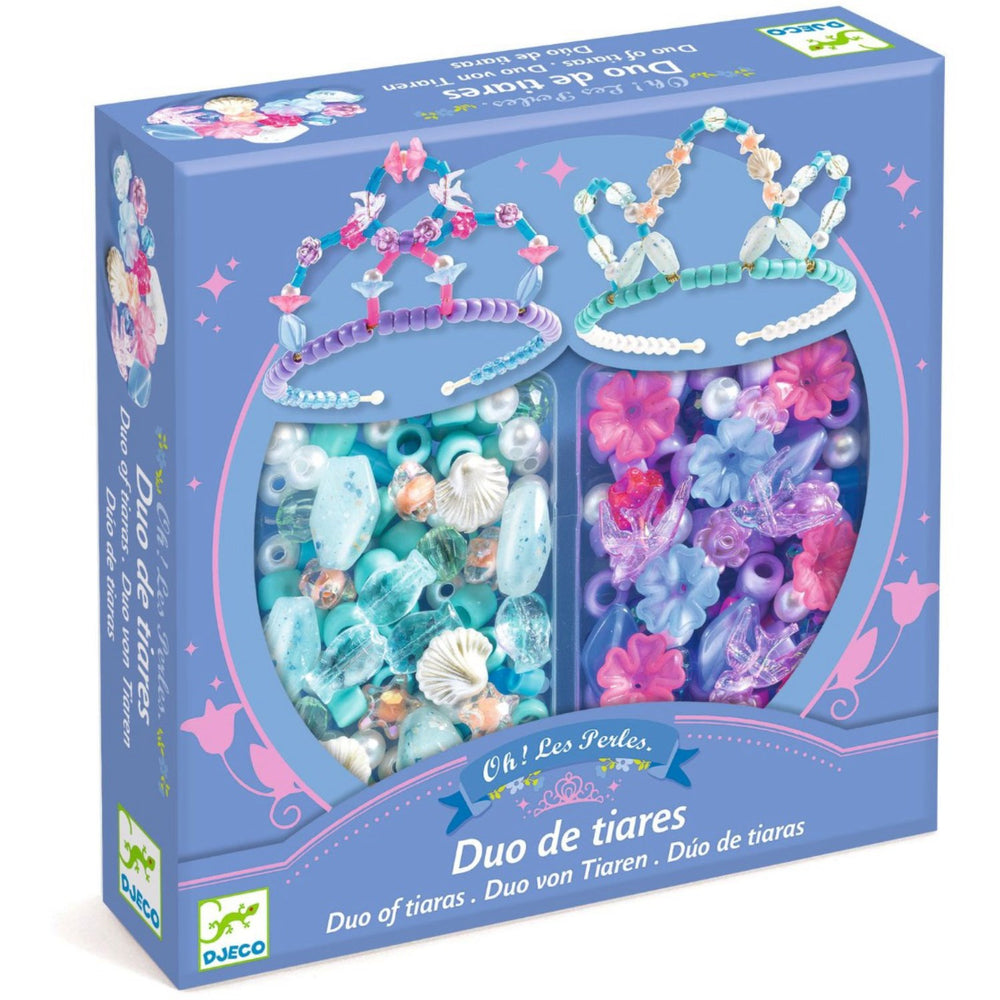 Let your creativity take flight with Djeco Perler, Blue Diadem from Kreakasser. This kit includes everything you need to create two beautiful tiaras, including 240 colorful acrylic beads and elegant gold headbands. Weaving beads on flexible metallic wire enhances fine motor skills and provides hours of creative play. Perfect for children who love designing and wearing their own jewelry. This set enhances creativity and independence, and is easy to store and transport—a great way to spend quality time together and create memorable moments.