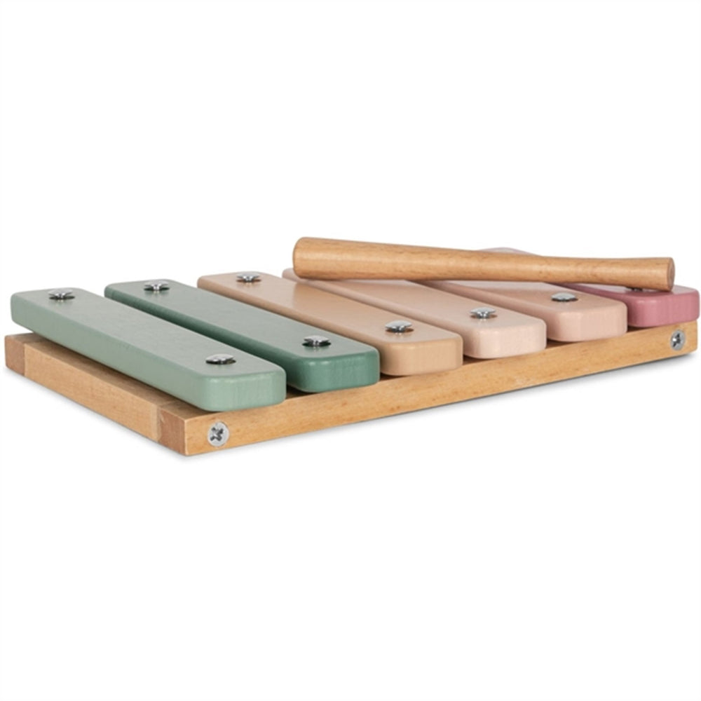- 1 x tamburin, 1 x castanet, 1 x maraca, 1 x xylofon med trommestikker