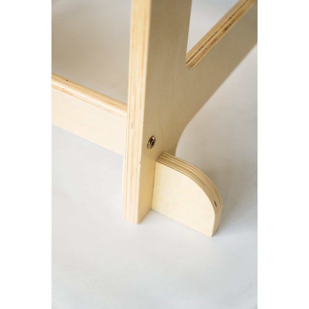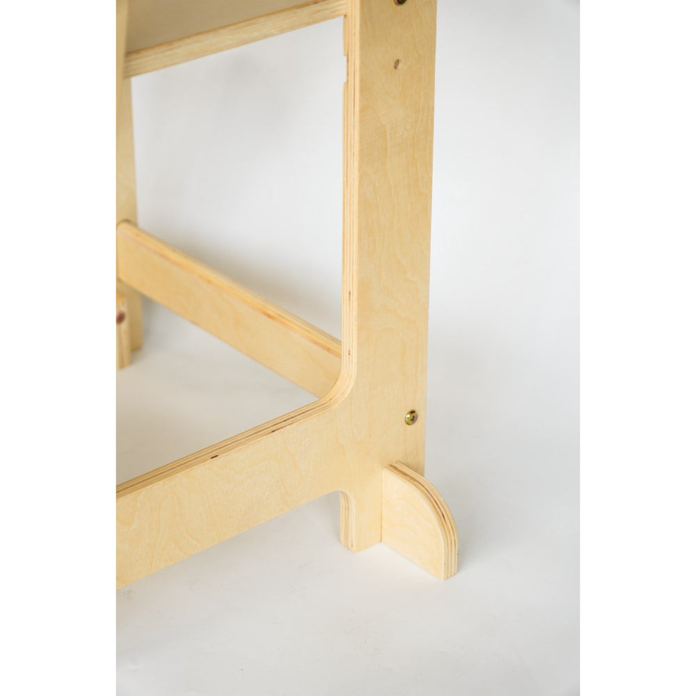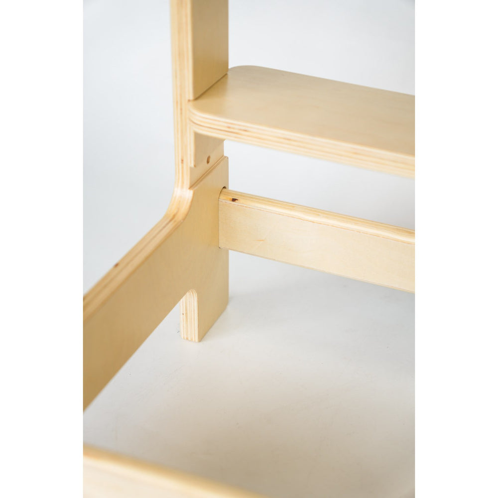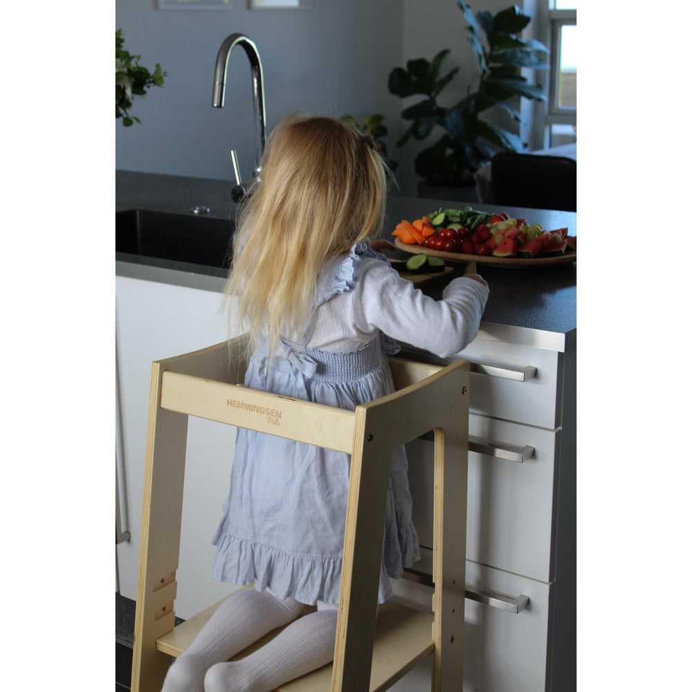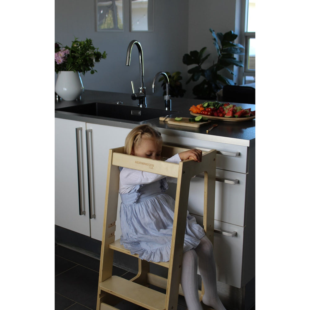 Martin Justerbart Læringstårn fra HEMMINGSEN Kids tilbyder sikker og stabil støtte med sin robuste konstruktion og integreret rygstøtte. Designet til at vokse med dit barn, justeres tårnet let i tre højder og har et ergonomisk trappetrin, der tilskynder selvstændig anvendelse. Fremstillet af miljøvenligt træ og behandlet med økologisk lak, er det let at vedligeholde og passer smukt i ethvert rum. En ideel løsning for at styrke dit barns uafhængighed og engagement i daglige aktiviteter, samtidig med at det bidrager til kvalitetstid i familien.