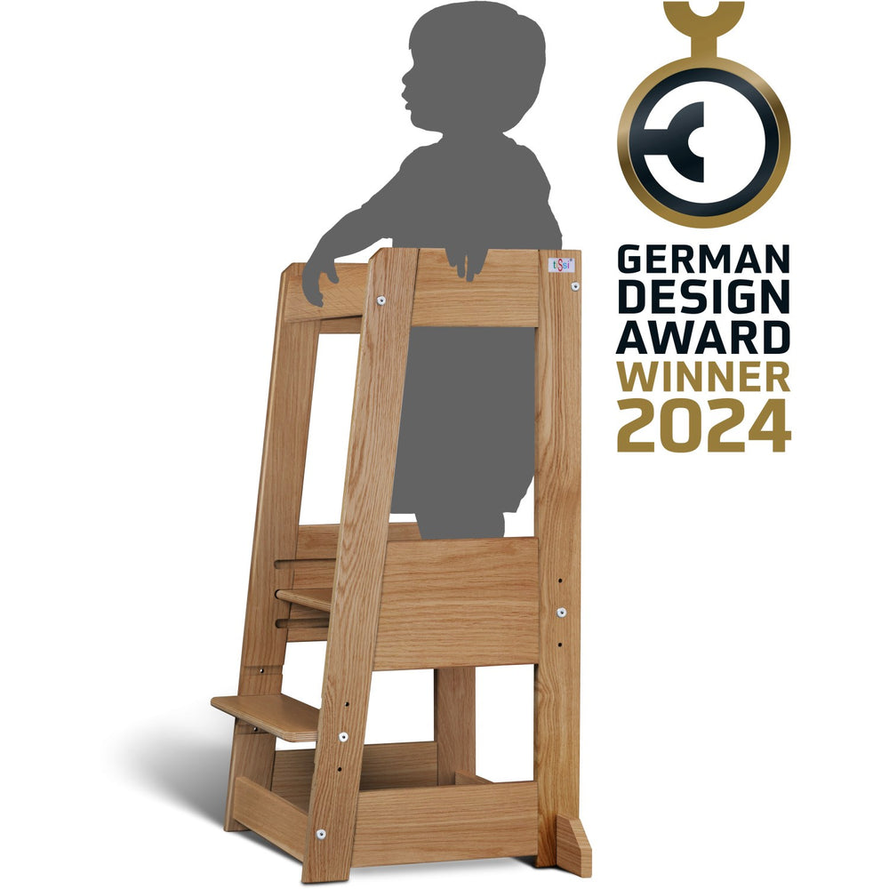 tiSsi® Nature Felix Læringstårn i massiv eg giver dit barn mulighed for at nå nye højder sikkert og trygt. Med justerbare højder vokser tårnet sammen med dit barn, hvilket sikrer optimal anvendelse fra 1 til 4 år. Læringstårnet fremmer barnets deltagelse i køkkenaktiviteter, hvilket understøtter udviklingen af sociale færdigheder og sprog. Robust design og høj sikkerhedsstandard gør det til en ideel partner i barnets første opdagelsesrejser ved familiens side. Perfekt til en hverdag, hvor samvær og læring går hånd i hånd.