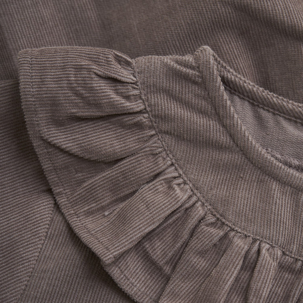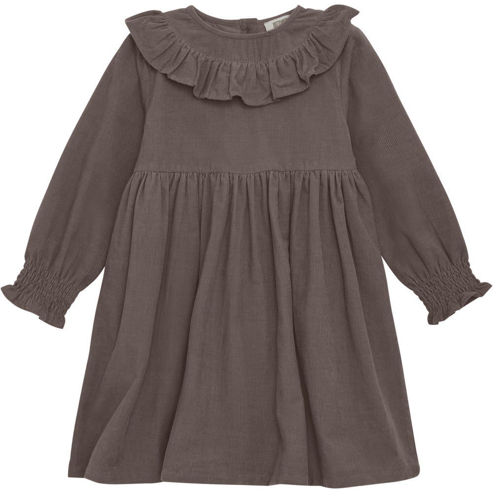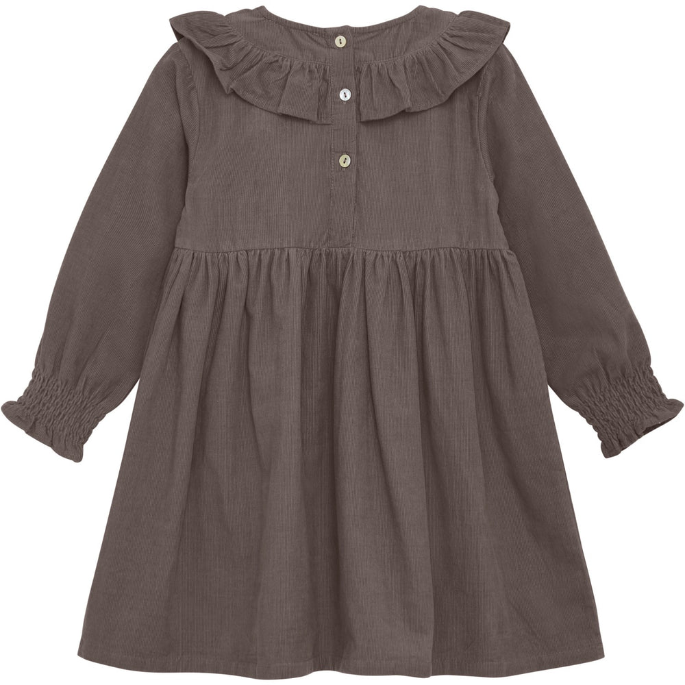 Denne charmerende fløjlskjole fra HUTTEliHUT er i en klassisk ensfarvet design, perfekt til små modebevidste. Kjolen, der er fremstillet af GOTS-certificeret økologisk bomuld (CERES-0366), sikrer både miljøvenlighed og blødhed. Detaljerne inkluderer elegant puf i ærmerne og smock-effekt på forsiden, der tilføjer unikke folder og vidde til nederdelen. Elasticitet i ærmerne og to knapper i nakken øger komforten og gør påklædningen enkel. Ideel til alle typer af arrangementer, hvor dit barn skal føle sig både komfortabelt og stilfuldt.