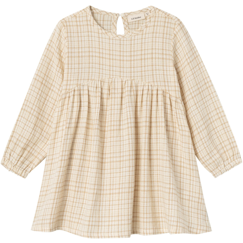 Denne elegante Kaley Loose Kjole fra Lil'Atelier fremhæver et klassisk design med sin runde hals og lange ærmer med elastiske manchetter. Fremstillet i et vævet stof, der har et krydsmønster og en struktureret overflade, sikrer den en ren profil og åndbar komfort. Kjolen, i en blid Lemon Icing farve, er indbegrebet af stil med en let pasform og praktisk knap- og sløjfefastgørelse, der gør den ideel til hverdagsbrug. Sikker og stilfuld for småbørn.