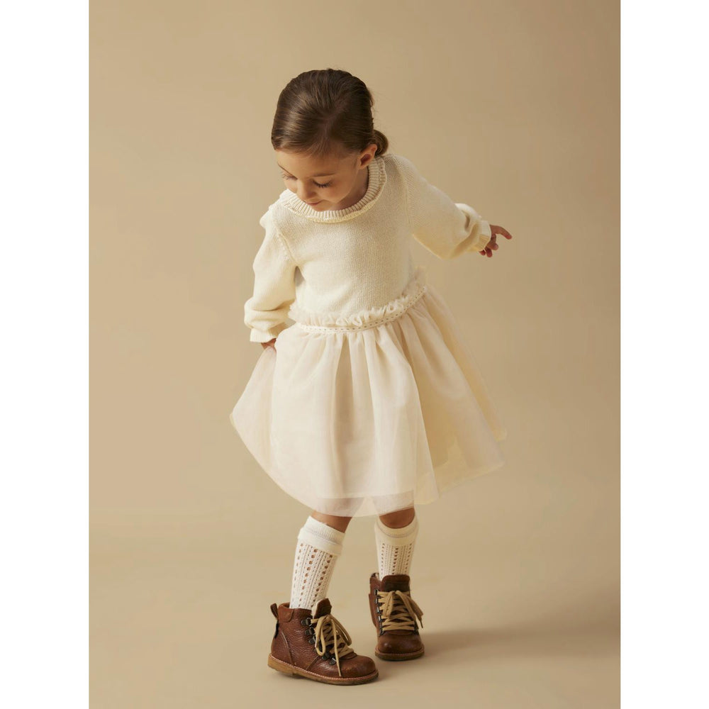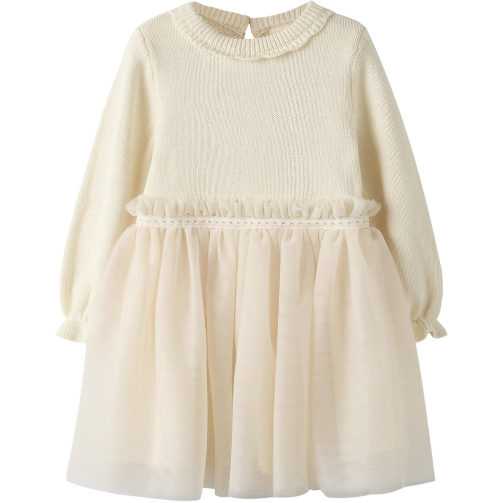 Lad Lil'Atelier opfriske dit barns tøjvalg med den charmerende Pistachio Shell Nmfsarina Ls Strik Kjole. Denne kjole er fremstillet med et blødt, økologisk bomuldsfor, der sikrer komfort hele dagen. Det klassiske design med rund hals, lange ærmer og flæsemanchetter kombineret med dekorative kammusling- og tyl-detaljer tilfører stil og finesse. Perfekt til både hverdag og særlige begivenheder, og med knap- og løkkelukning, der gør den let at tage på og af. Den regulære pasform understøtter fri bevægelse og gør denne kjole til et ideelt valg for dit barn.