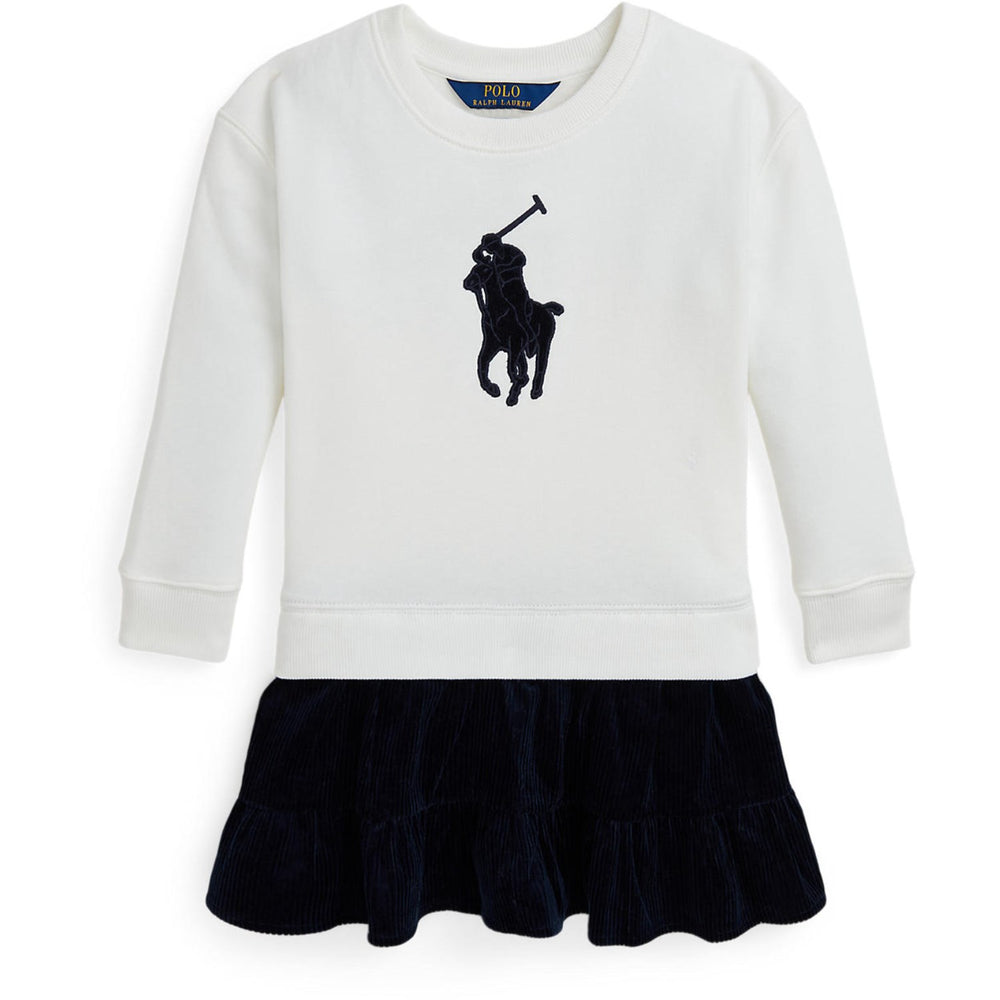 Denne charmerende Polo Ralph Lauren kjole i 'Deckwash White' med Navy Day detaljer kombinerer stil med komfort. Fremstillet i bløde, kvalitetsmaterialer, sikrer den en behagelig pasform til hverdagsbrug. Designet med et tidløst maritimt mønster, denne kjole er ideel til både festlige lejligheder og afslappede dage. Let at vedligeholde og perfekt for aktive børn.
