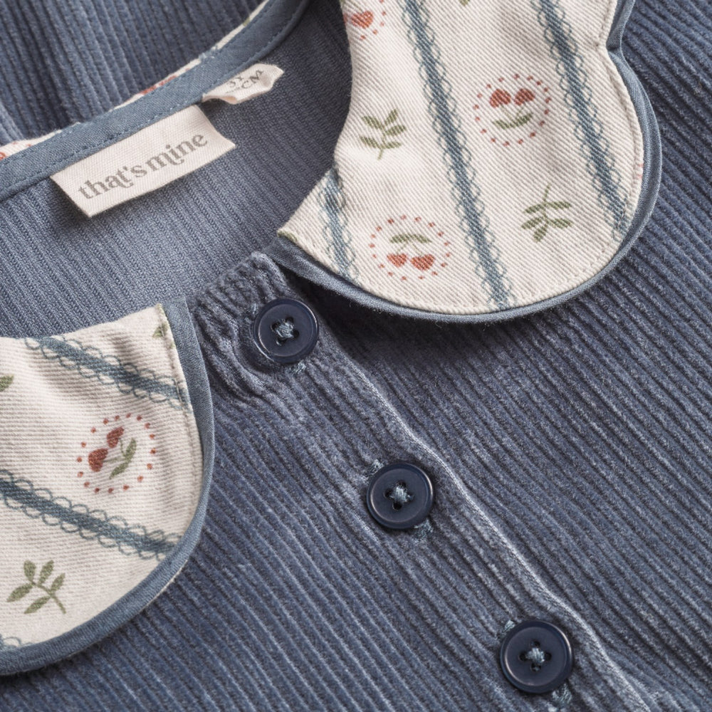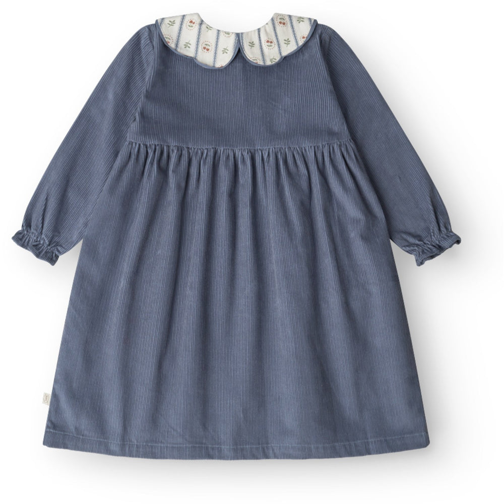 Denne charmerende Rosalia-kjole er fremstillet i blødt fløjlsfløjl, der sikrer en behagelig pasform for enhver lille pige. Med sit smarte design, herunder en elegant krave og praktisk knaplukning foran, kombinerer denne kjole både stil og funktionalitet. De unikke katteformede lommer tilføjer et legesygt touch, mens elastikken ved ærmekanterne garanterer en perfekt pasform. Ideal til både hverdagsbrug og særlige anledninger.