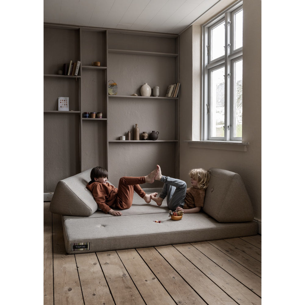 Den er perfekt til både leg, tumling og overnatning. Brug den til aktive stunder med hop og dans, kreative lege eller rolige øjeblikke med højtlæsning og film. Med en topmadras kan den hurtigt forvandles til en komfortabel gæsteseng. Det tidløse sandfarvede design og de bløde, slidstærke materialer gør den til et naturligt valg i det moderne hjem.