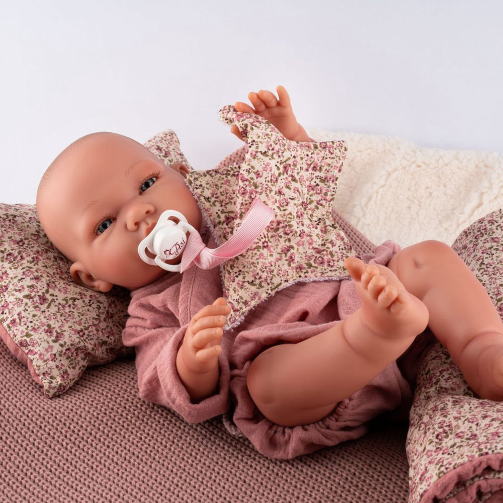 Varm hygge og praktisk tænkning mødes i Así Martina Kollektionens sutteklud med sut, designet til dukker på 36-46 cm. Denne charmerende sutteklud gør legestunden både komfortabel og bekvem, da sutteholderfunktionen sikrer, at dukkens sut altid er nær. Fremstillet i blødt materiale og dekoreret med et vintage rosa blomsterprint, tilbyder den også et visuelt tiltalende tilbehør til enhver dukke. Produktet er CE-mærket og egnet til børn fra 3 år, hvilket sikrer sikkerhed under leg. Perfekt til at opmuntre til omsorgsfuld leg og medvirke til at skabe kærlige familieminder.