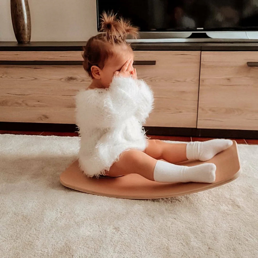 Balancebræt fra Curve Lab, designet til at stimulere små børns motoriske færdigheder og kreativitet. Little Arc er perfekt til børn fra 0-3 år og fremmer deres balance og koordination på en sikker måde. Med en blød filt på undersiden sikres både gulvet og barnets stabilitet. Let at opbevare og renholde, hvilket gør det ideelt til daglig brug i hjemmet. Styrker familiens samvær gennem aktiv og udviklende leg.