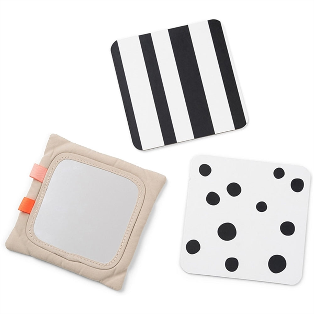 Der medfølger et spejl og to dobbeltsidede kontrastkort