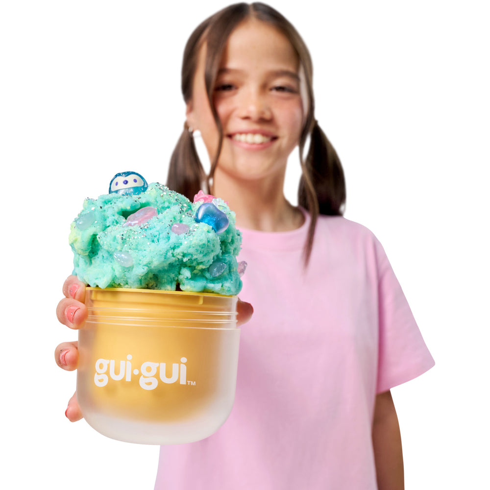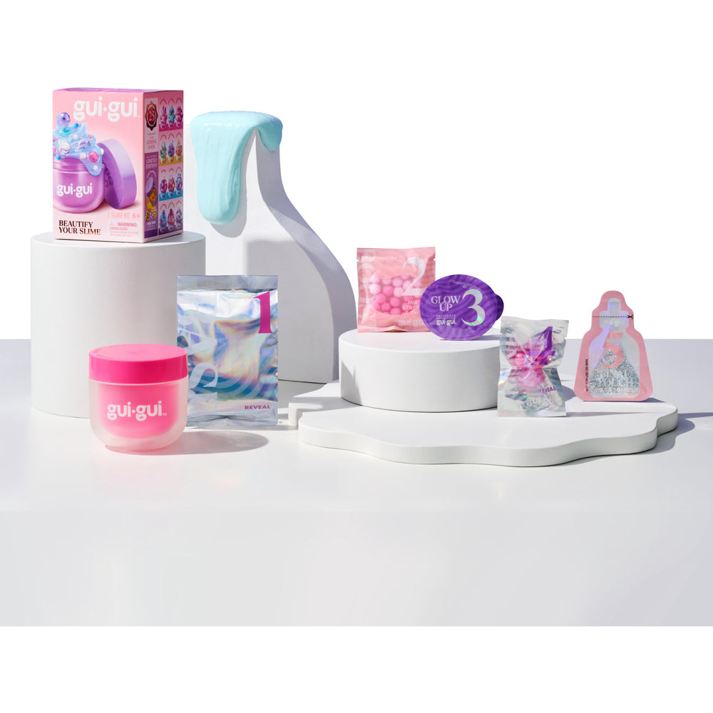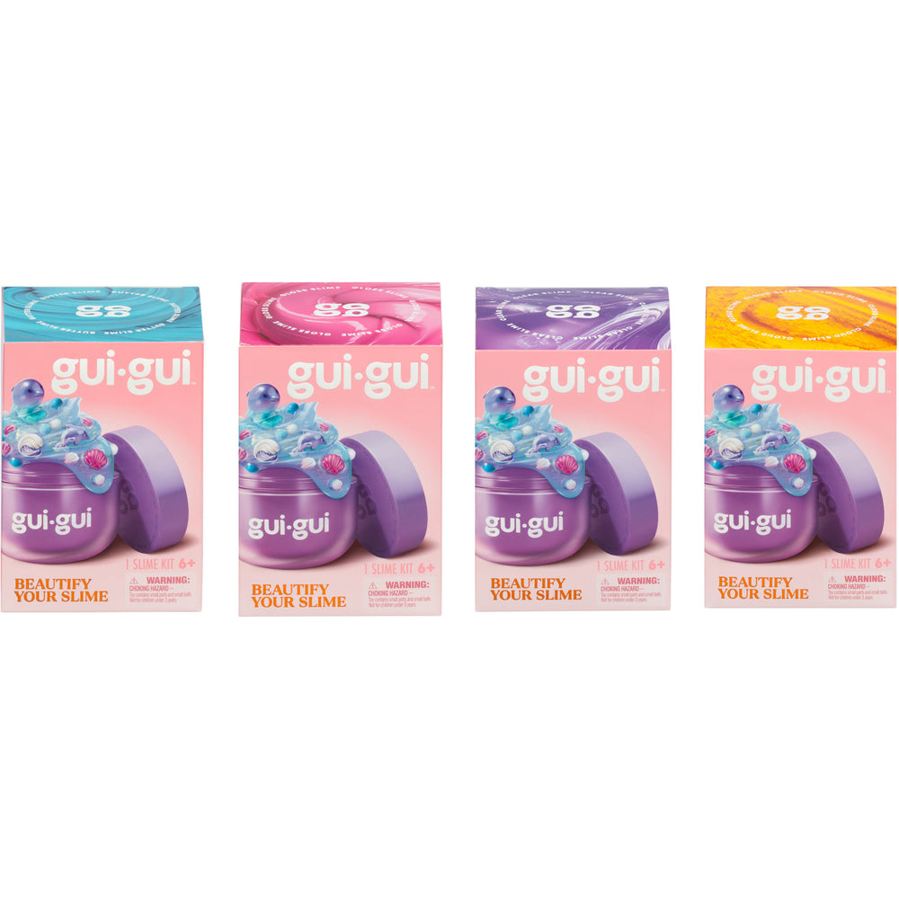 • Ekstra: Skønhed møder slim. Oplev det nyeste inden for sanseleg med GUI GUI Slime! Inspireret af skønhedens verden – dens farver, dufte og teksturer – tilbyder denne serie en unik unboxing-oplevelse. Vælg mellem fire dejlige teksturer: Gloss, Klar, Smør og Sky – hver med overraskende farver, dufte og charmes. Hver pakke indeholder også en sød samlefigur og glimmer, der fuldender din kreation. Perfekt til børn på 6+ år, som elsker kreativ leg og overraskelser.