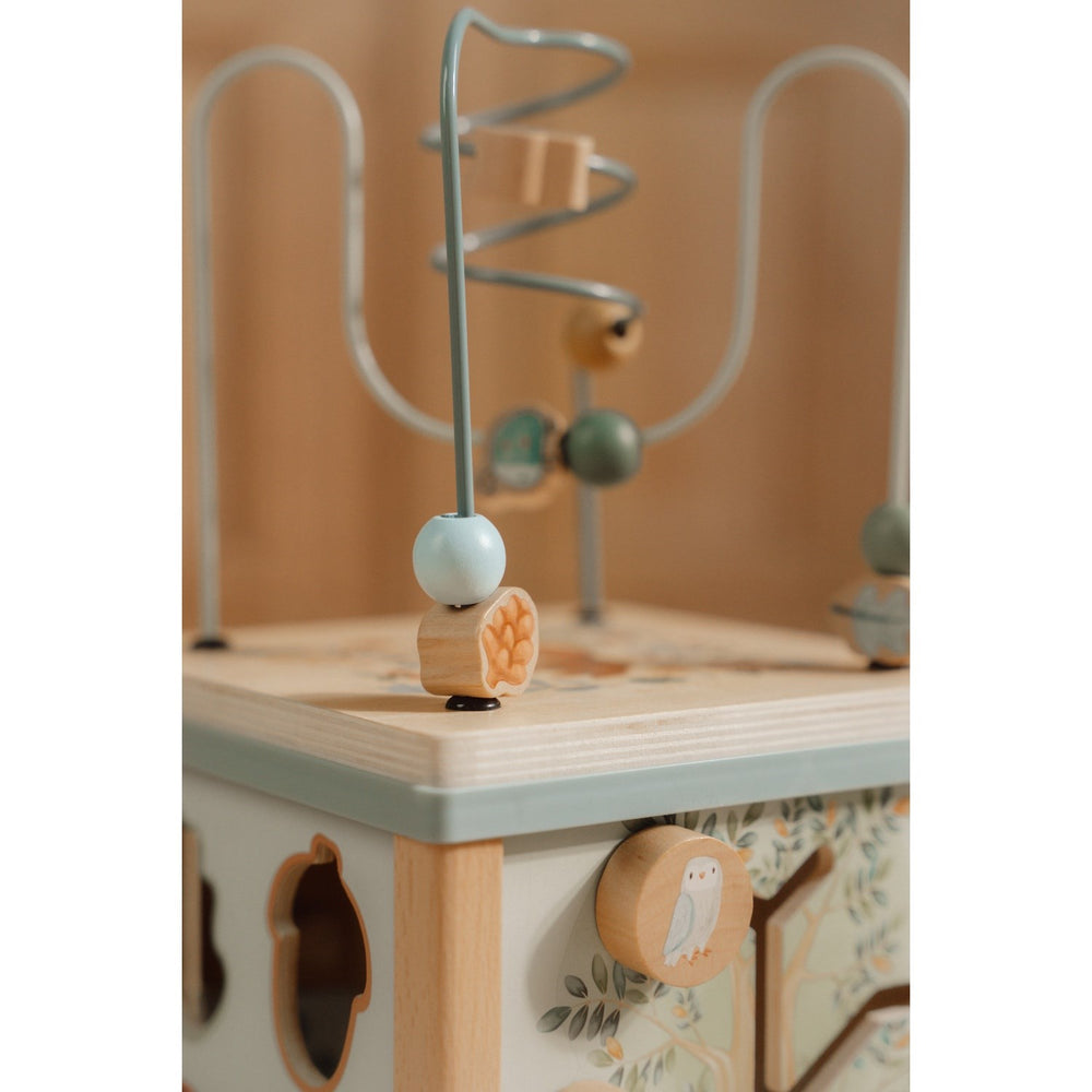Stimuler dit barns udvikling med Little Dutch Forest Friends Blue Aktivitetskube. Denne farverige terning tilbyder sjove aktiviteter på alle sider, inklusive form sortering, roterende tandhjul og et fascinerende perlelabyrintspil på top. Med levende illustrationer af skovens venner, er hver opgave designet til at udvikle finmotorik og stimulere kreativ tænkning. Nem at gribe og holde, perfekt til små hænder, og let at opbevare. En herlig måde at bringe lærerig sjov ind i hjemmet.