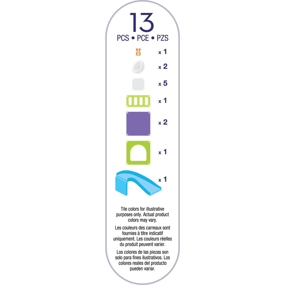 • 13 magnetiske dele, inklusive en eksklusiv hamst figur og 2 klare halvkugler til bolden