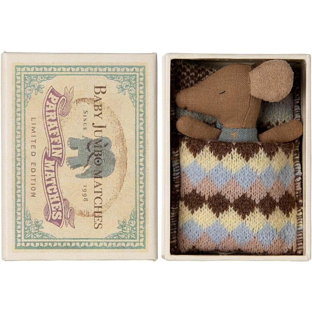 Maileg Sove/Vågen Baby Mus I Tændstikæske - Blå