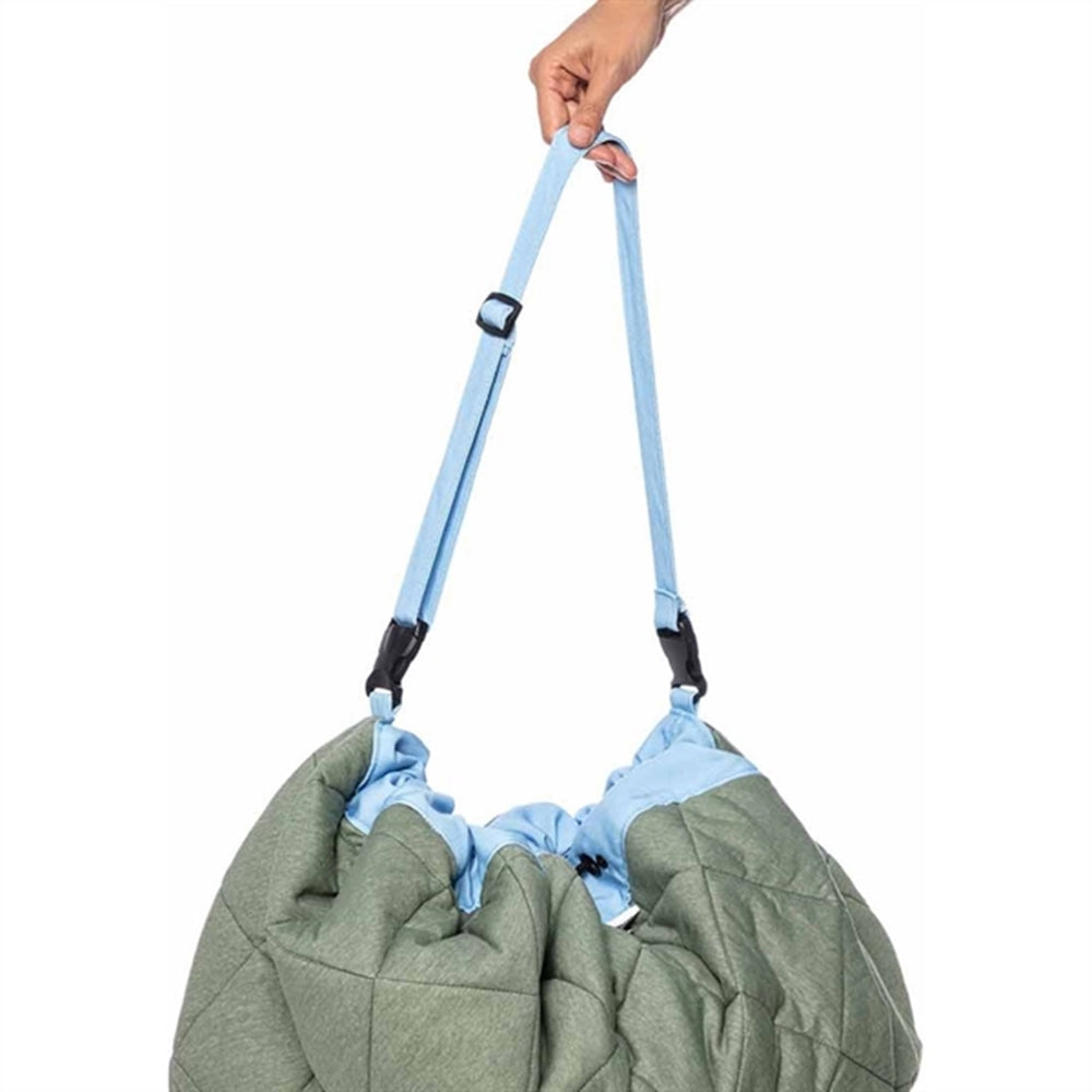 - Kan både bruges som legetæppe, opbevaringspose og taske der kan hænges på klapvognen/Barnevognen