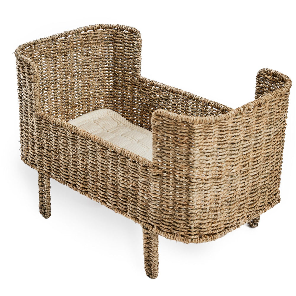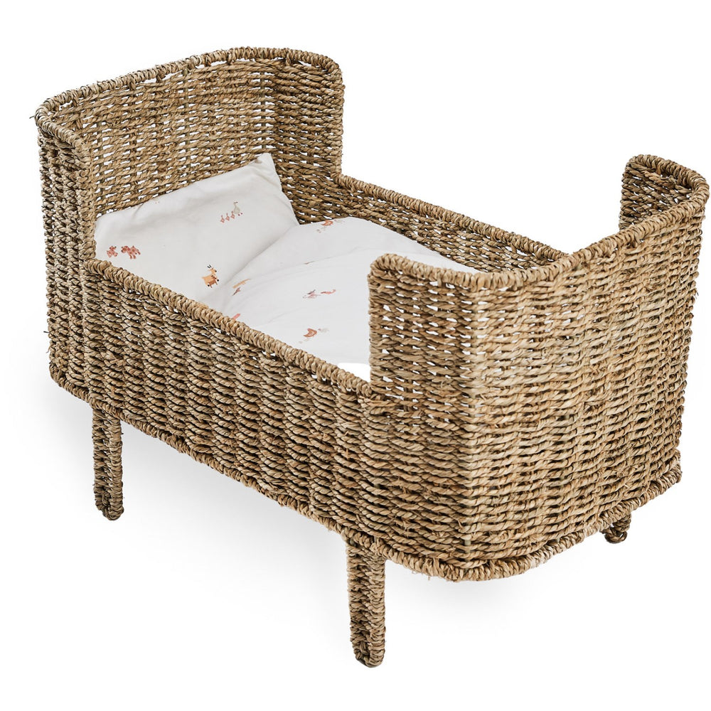 Skøn håndlavet dukkeseng i søgræs, perfekt til at fostre kreativ leg og udvikle omsorgsevner hos børn fra 1+ år. Denne charmerende seng er udstyret med en blød bomuldsmadras, der sikrer dukkernes komfort. Med målene 28x52x34 cm passer den nemt ind i ethvert børneværelse. Den er let at rengøre med en fugtig klud, hvilket gør vedligeholdelsen bekvem for forældrene. Et dejligt supplement til familiehyggen, hvor børnene kan udtrykke deres kærlighed og omsorg gennem leg.