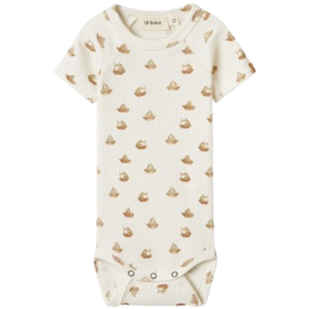 Forkæl din lille med Lil'Atelier Coconut Milk Boat Nbmlavo Eni Ss Slim Body bodystocking, der kombinerer stil og komfort. Dette beklædningsstykke er fremstillet i blød og strækbar jersey, som sikrer optimal bevægelsesfrihed og en behagelig fornemmelse mod huden. Med korte ærmer, bedstefarhals og praktiske trykknapper både ved skuldrene og i bunden, gør det både påklædning og ble-skift let. Den charmerende trykudskrivning tilføjer et legende touch til designet, mens den sikre lukning sørger for, at din baby er komfortabel hele dagen.