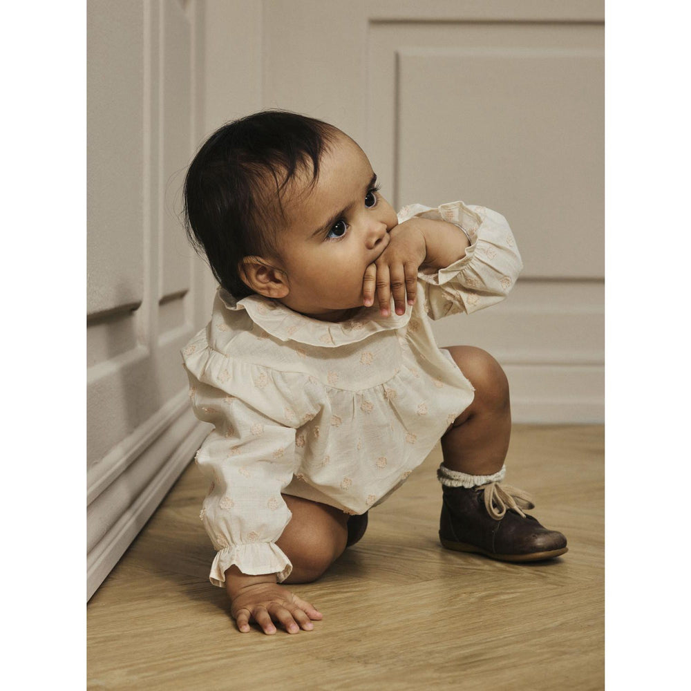 Klæd dit barn på med Lil'Atelier Pastel Parchment Nbfnethe Ls Loose Body, som forener stil og komfort. Denne bodystocking i vævet stof fremhæver et krydsmønstret design og en let struktureret overflade, der tilfører et klassisk touch. Det praktiske rund hals og lange ærmer med elastiske manchetter sikrer en behagelig pasform. Takket være knapper og hægtelukninger er den nem at tage på og af, hvilket gør den ideel til hverdagsbrug. Sikkerhedsnote: Holdes væk fra ild.