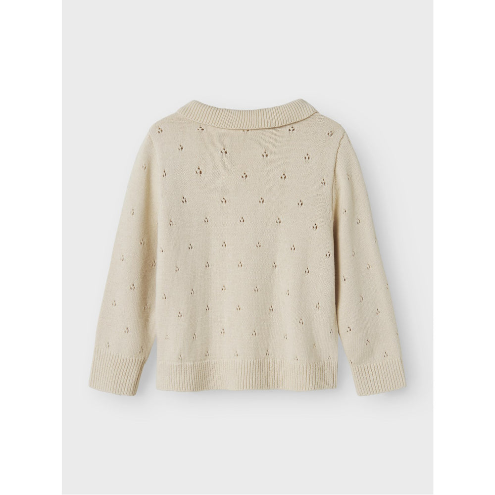 Dyk ned i komfort og stil med Lil'Atelier Turtledove Nmfnakita Ls Loose Strik. Denne strikkede top byder på en blød tekstur og åbent design, perfekt til barnets daglige aktiviteter. Med polohals, lange ærmer og en praktisk knaplukning er denne top både funktionel og moderigtig. Dikkedarer tilføjer et charmerende touch, og den løse pasform sikrer optimal bevægelsesfrihed for dit barn. Ideel til både leg og afslapning.