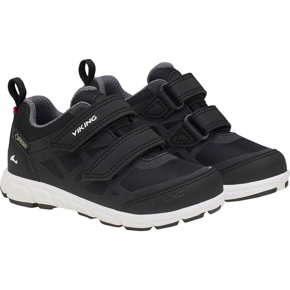 Opdag de nye Veme Reflex GTX 2V sneakers fra Viking, perfekte til små fødder, der elsker eventyr! Med en robust og miljøvenlig konstruktion består 60 % af skoens dele af genbrugsmaterialer, alle certificeret veganske. De stilfulde sneakers er designet i en moderne sort/charcoal farve med skarpe mønsterreflekser, der øger synligheden og sikkerheden. Skoene integrerer en vandtæt GORE-TEX-membran, der garanterer tørre fødder i al slags vejr, mens den fleksible gummiydersål med stærke tå- og hælforstærkninger fremmer både komfort og holdbarhed. Den justerbare 2V-lukning sikrer en perfekt pasform, og den aftagelige indersål kan vaskes ved 30 grader, hvilket gør vedligeholdelsen enkel. Vælg Viking Veme Reflex GTX 2V for en sko, der leverer både stil og substans til dit barns garderobe.