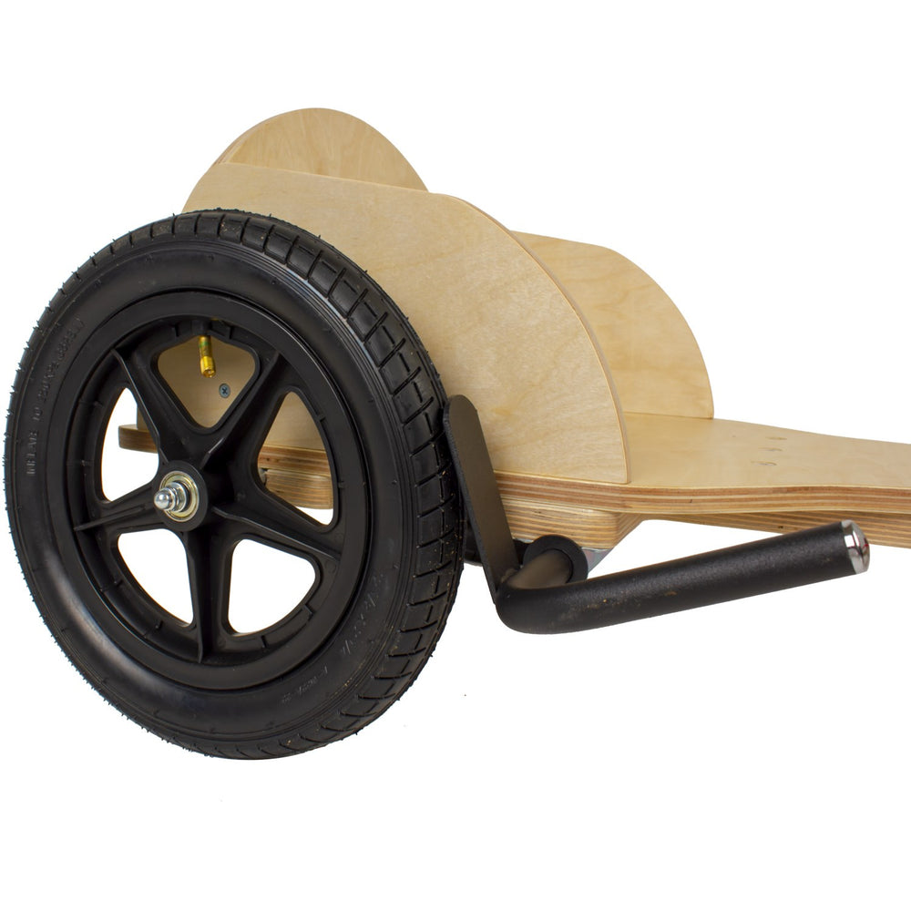 De glatte kuglelejer og kvalitetshjul sikrer en behagelig tur for både den, der kører, og den, der hjælper med at trække. Boxkarten er CE-godkendt og bygget til at holde til aktiv leg.
