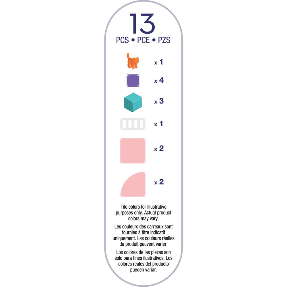 - 13 magnetiske dele, inklusive en unik kattefigur og kvartcirkelformede fliser