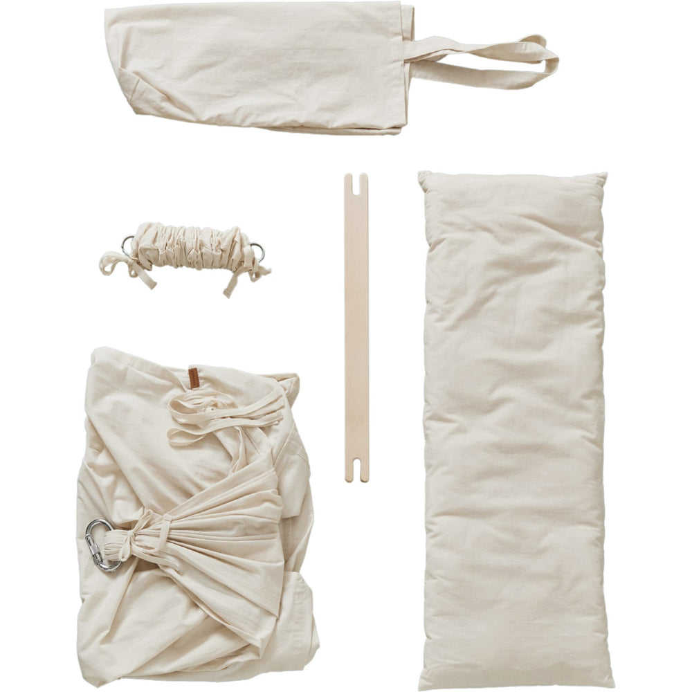 - Materialer: Hængekøje:Økologisk bomuld.Madrasfyld: Polyester