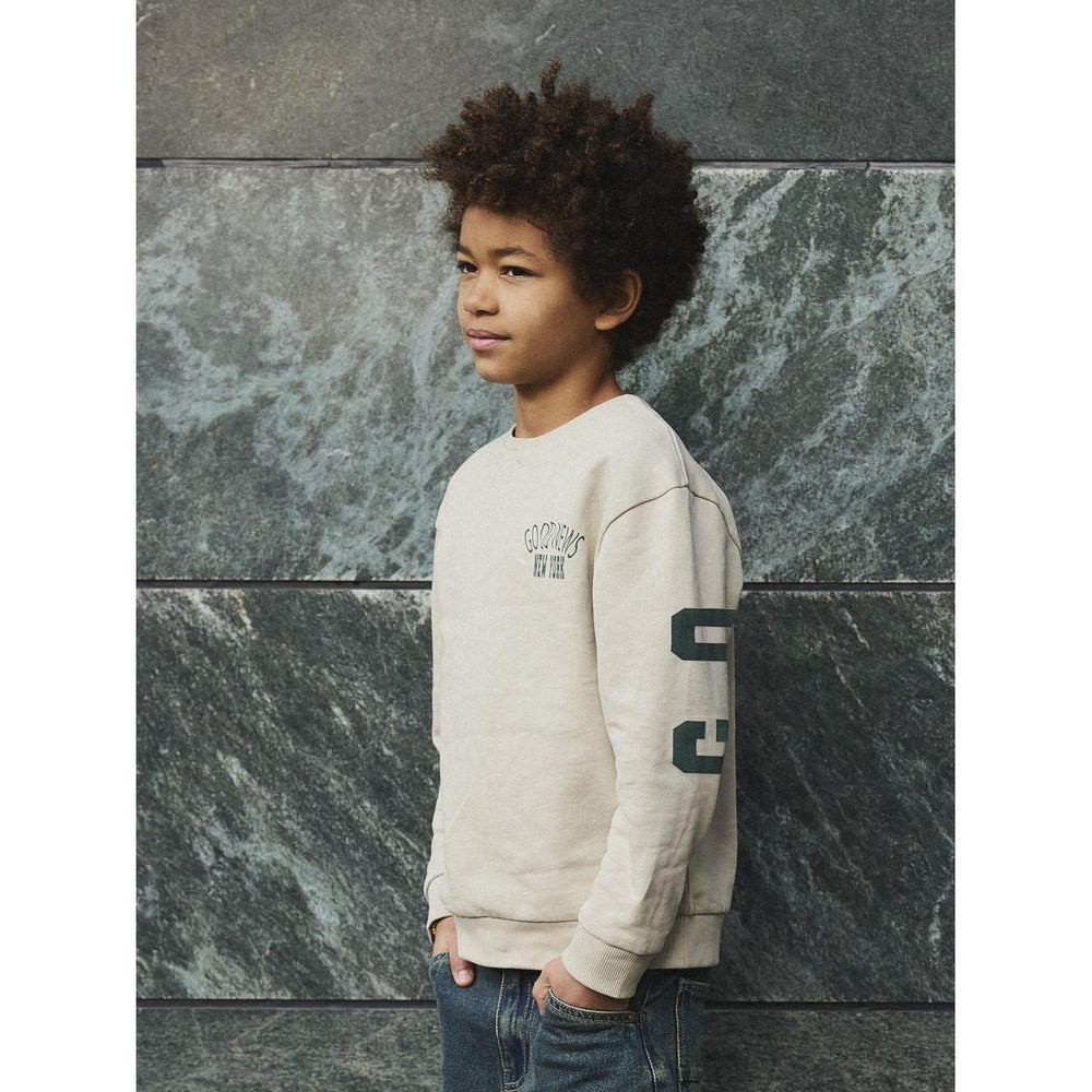 Lad dit barn opleve den ultimative komfort med denne stilfulde sweatshirt, perfekt til hverdagens eventyr. Fremstillet i blødt børstet sweatstof, sikrer denne trøje både varme og blød komfort mod huden. Den rund hals og lange ærmer bidrager til et klassisk look, mens gummiprintet tilføjer en diskret charme. Designet med en almindelig pasform, tilbyder den god bevægelsesfrihed, uanset aktivitet. Denne sweatshirt kombinerer funktionalitet med cool stil, hvilket gør den til et praktisk og trendy valg for dit barns garderobe.